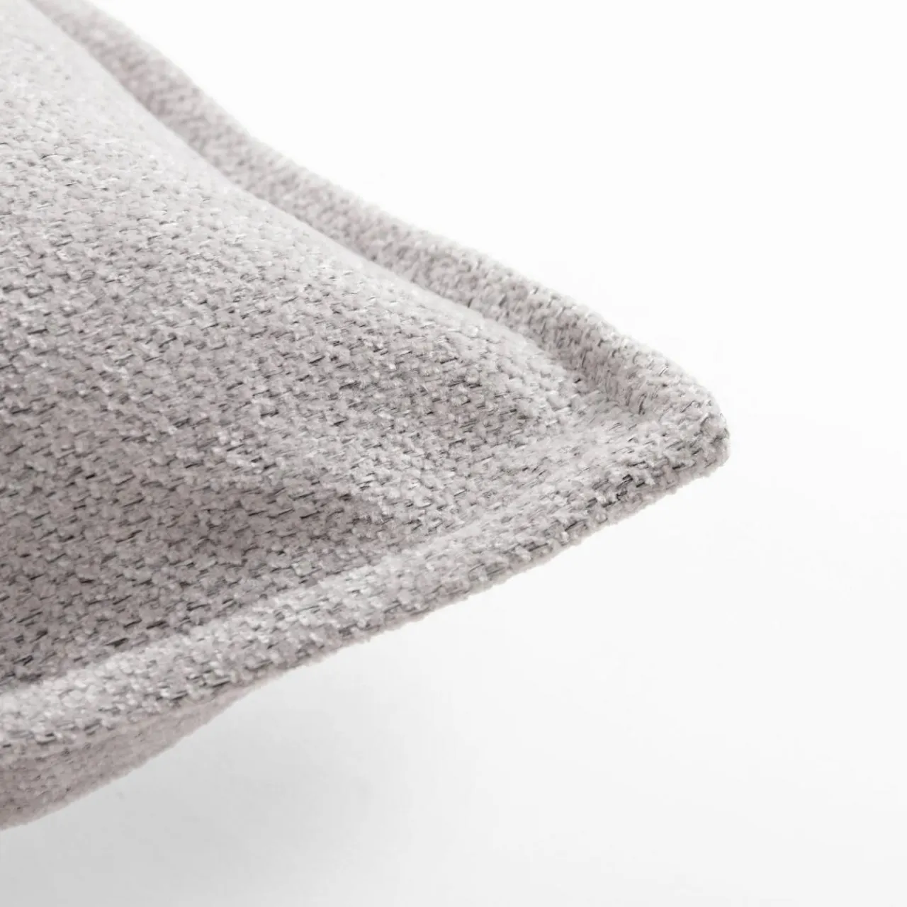 Jasnoszara tkanina o szenilowej strukturze jest miękka w dotyku. Wygodnie się na niej ułożysz.