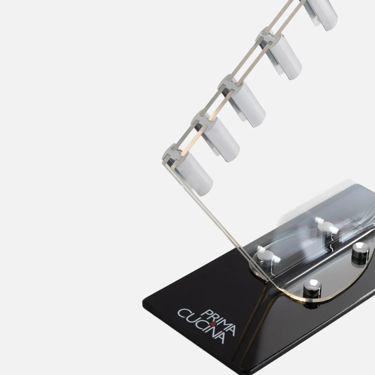 Komplet pięciu profesjonalnych noży w nowoczesnym bloku z przezroczystego akrylu to praktyczny i niezastąpiony element wyposażenia każdej kuchni. Noże wykonane są ze szlachetnej stali nierdzewnej i posiadają powłokę tytanową, odporną na zarysowania, dzięki której krojenie potraw będzie o wiele łatwiejsze i przyjemniejsze. Po każdym użyciu zaleca się mycie za pomocą miękkiej gąbki. W skład zestawu wchodzi: