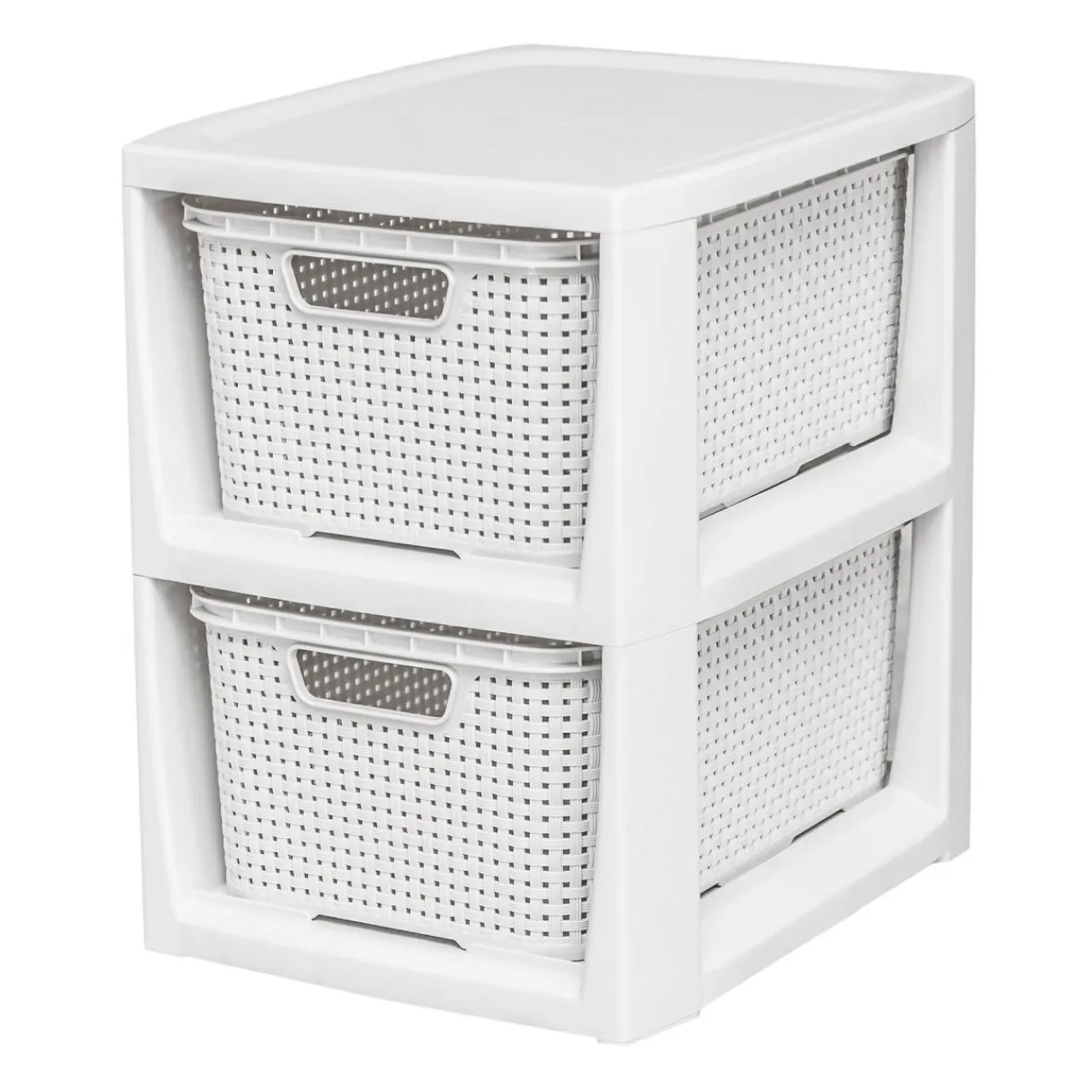 Pudełka I Pojemniki Do Przechowywania| Regał komoda z 2 koszami biały