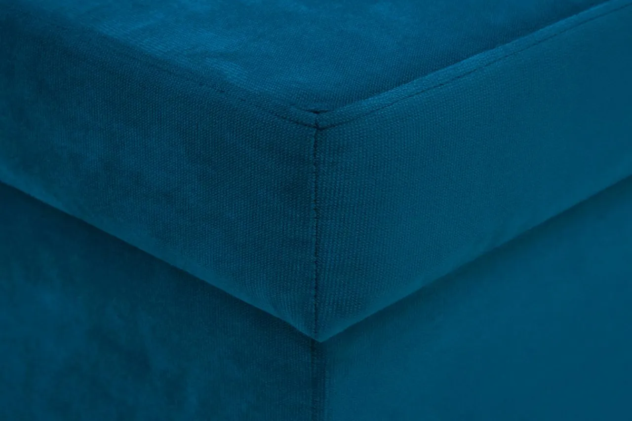 Tkanina welurowa KRONOS ma niebieskawy kolor – może jednak zmieniać odcień w zależności od barwy światła w pomieszczeniu. Połyskująca powierzchnia wygląda elegancko.