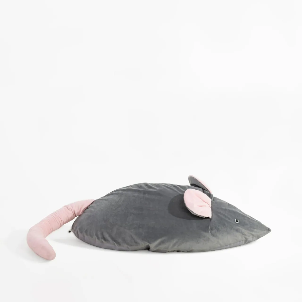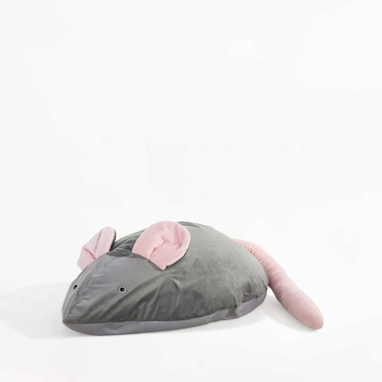 Puf w kształcie myszy to zabawny dodatek do dziecięcego pokoju. Wyposażony w sympatyczne oczka, uszy oraz uroczy różowy ogon zachęca do zabawy i nauki o zwierzątkach.