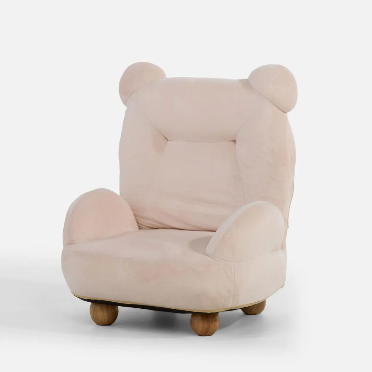 Uroczy fotel AKUKA w kształcie misia, w kolorze beżowym, zachwyca nietuzinkowym designem.