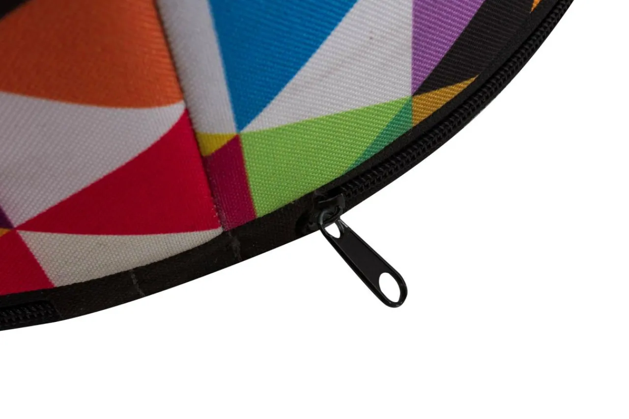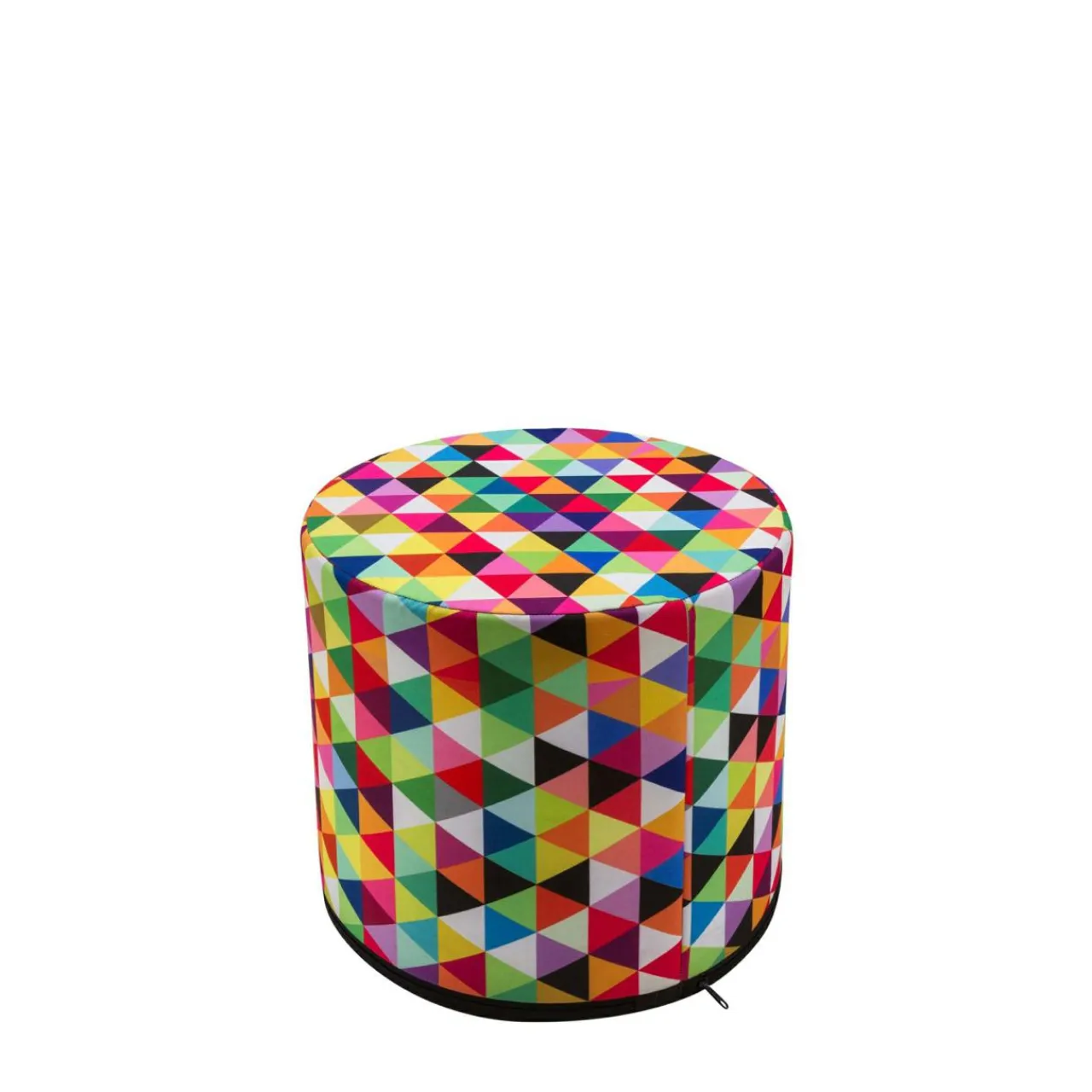 - Puf COLOMBINA idealnie sprawdza się we wnętrzach stylizowanych tematycznie. Lekko dowcipny nadruk przedstawiający multikolorowe trójkąty świetnie uzupełni aranżacje w stylu boho, ale także te, które inspiracje czerpią z wzorców szalonych lat sześćdziesiątych, motywów geometrycznych i stawiających mocny akcent na żywe barwy.