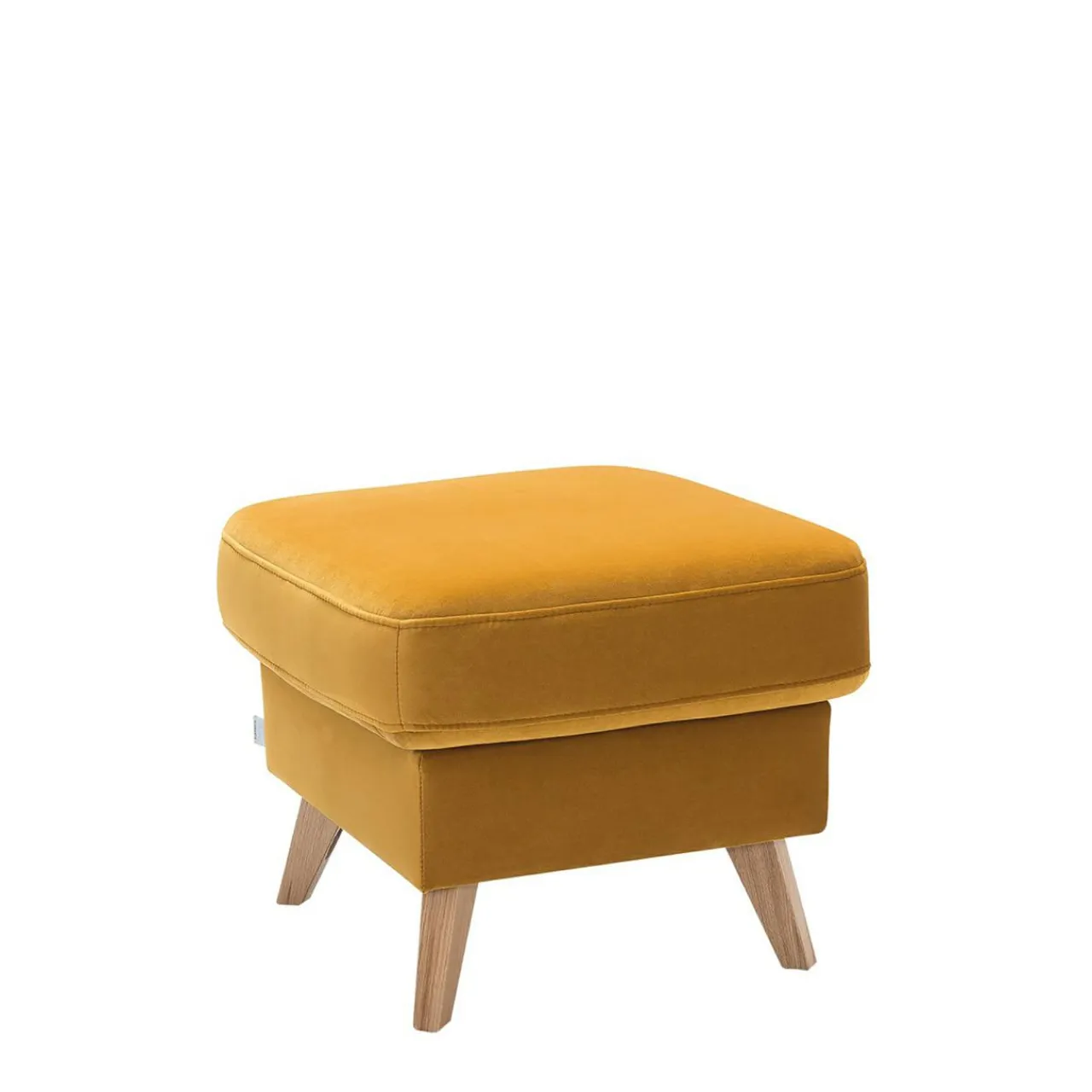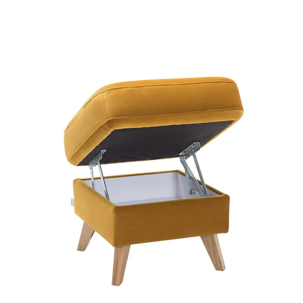 Dzięki dębowym nóżkom, pufę wpasujesz także w skandynawskie i nowoczesne wnętrza.