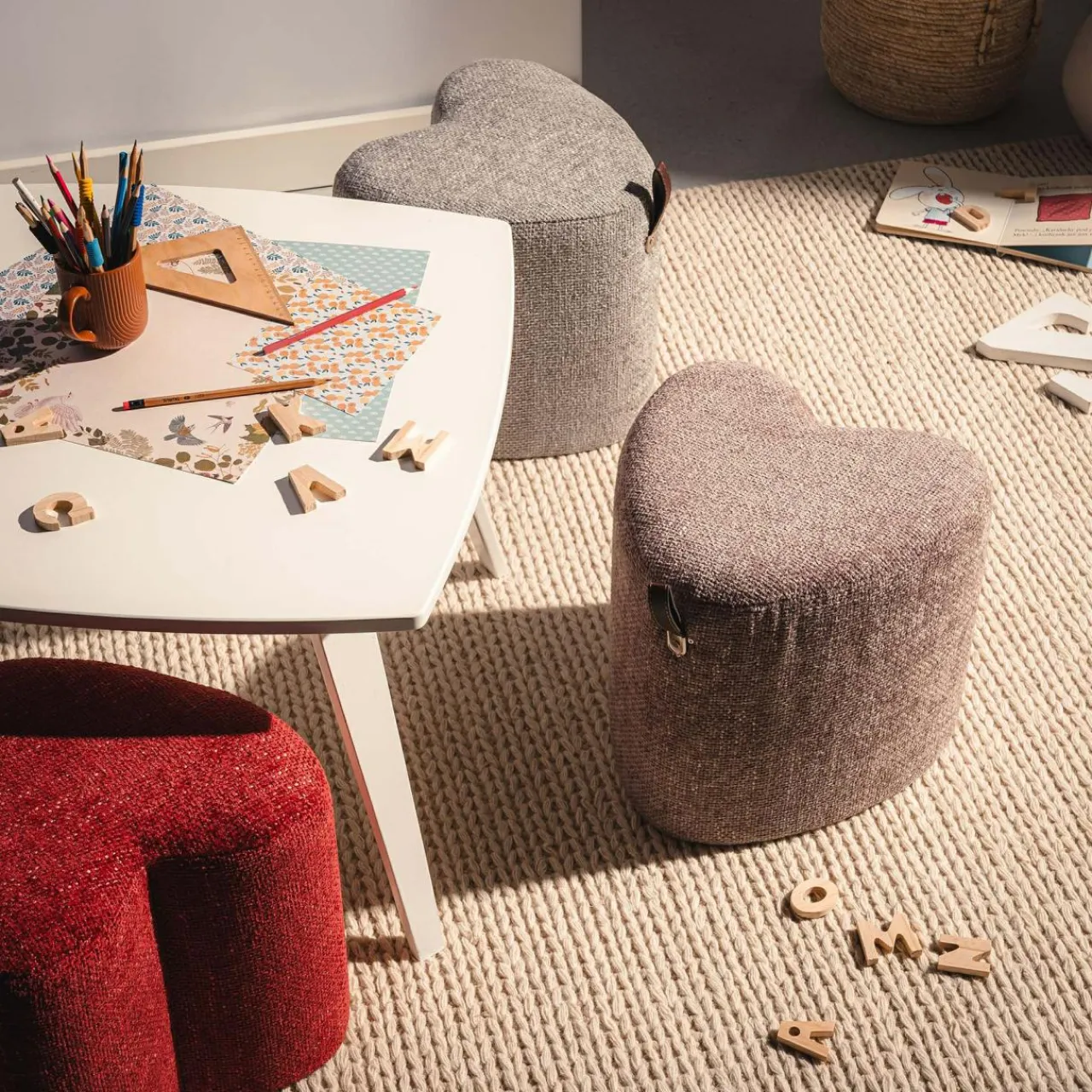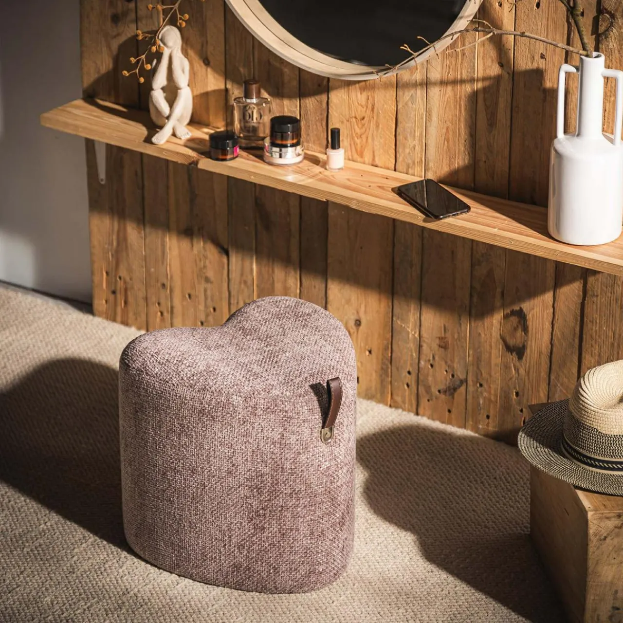 Mały puf ILLON w kształcie serca będzie uroczym dopełnieniem Twojego salonu. Dzięki niewielkiemu rozmiarowi puf sprawdzi się jako dodatkowe miejsce dla gości.
