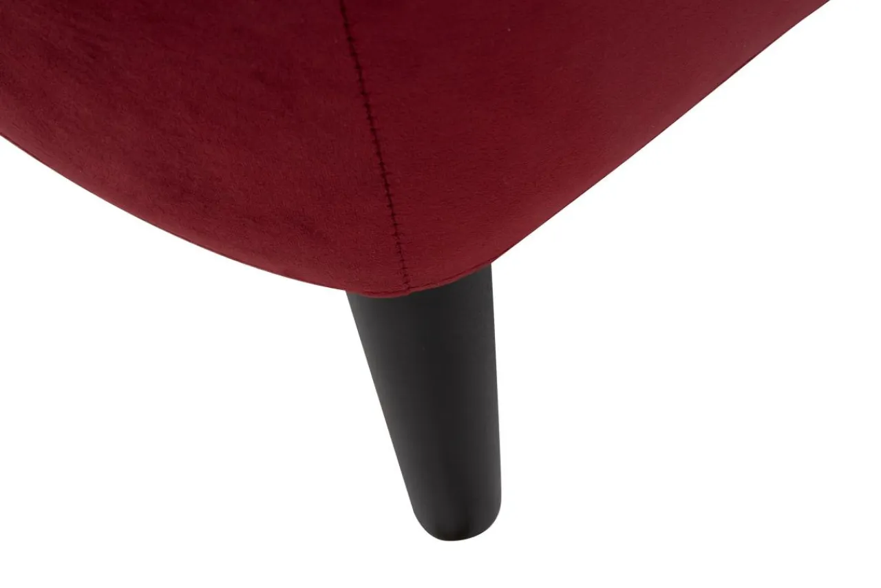 Klasyczna stylizacja mebla kojarzy się z wygodą i komfortem, a tkanina w ciemnym odcieniu czerwieni połączona z czarnymi nóżkami podkreśla jego elegancję i wyjątkowość.