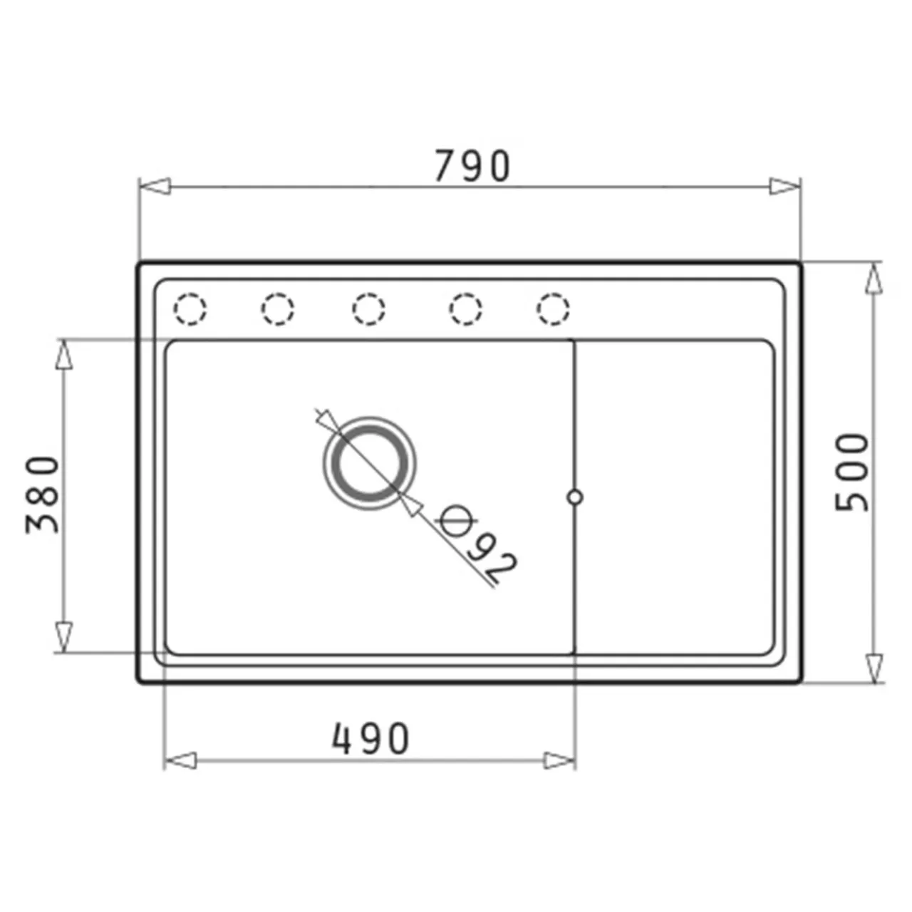 Zlewozmywak ARES posiada 5 podwiertów technologicznych, dzięki którym możesz zamontować baterię w miejscu, najodpowiedniejszym dla rozkładu swojej kuchni. Otwory możesz wykorzystać również do akcesoriów, takich jak dozownik płynu.
