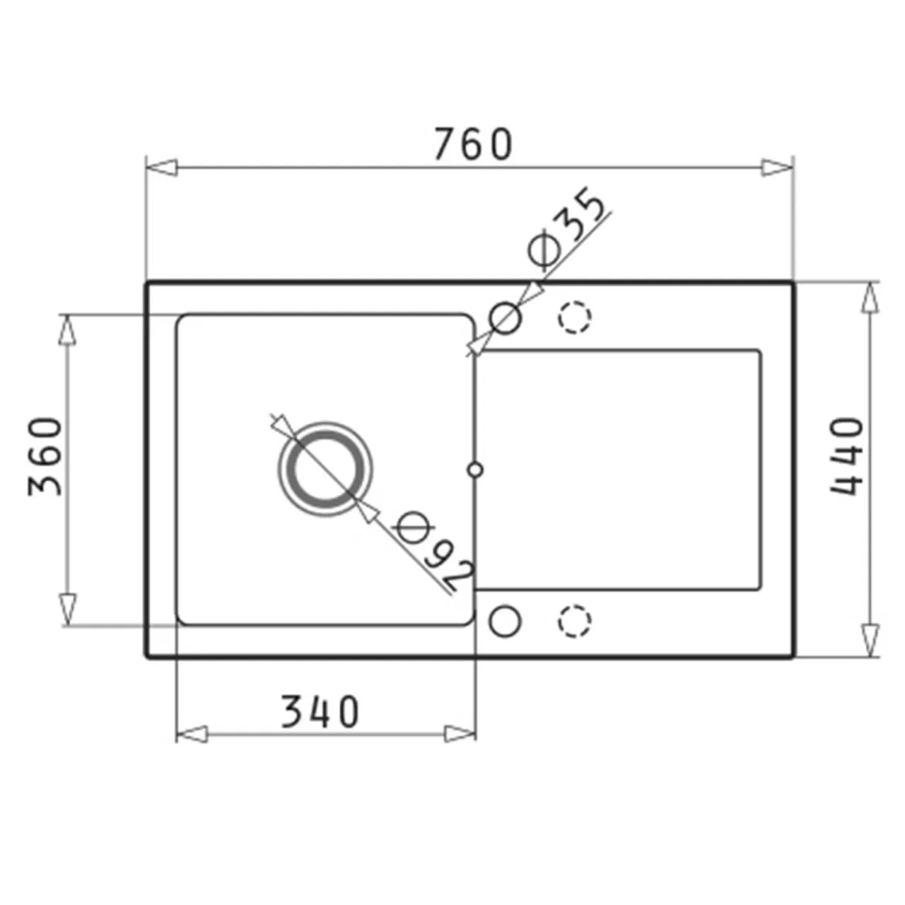 - Wymiary zlewozmywaka: 76×44 cm,