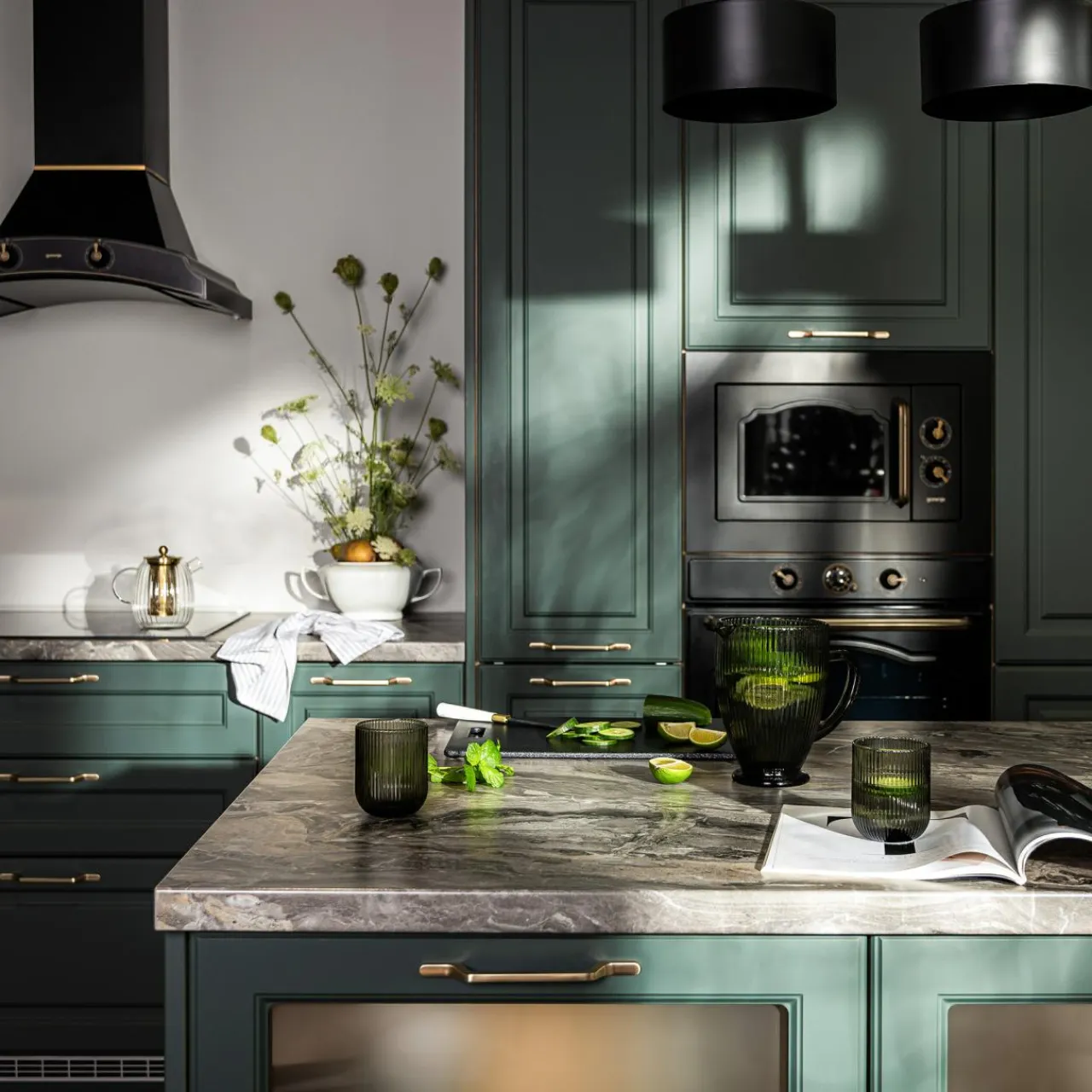 Blenda ma oryginalny oliwkowy kolor. Ten unikalny odcień daje wiele możliwości aranżacyjnych przy kuchennej zabudowie. Świetnie wygląda w połączeniu z czernią, brązem, złotem i mosiądzem.