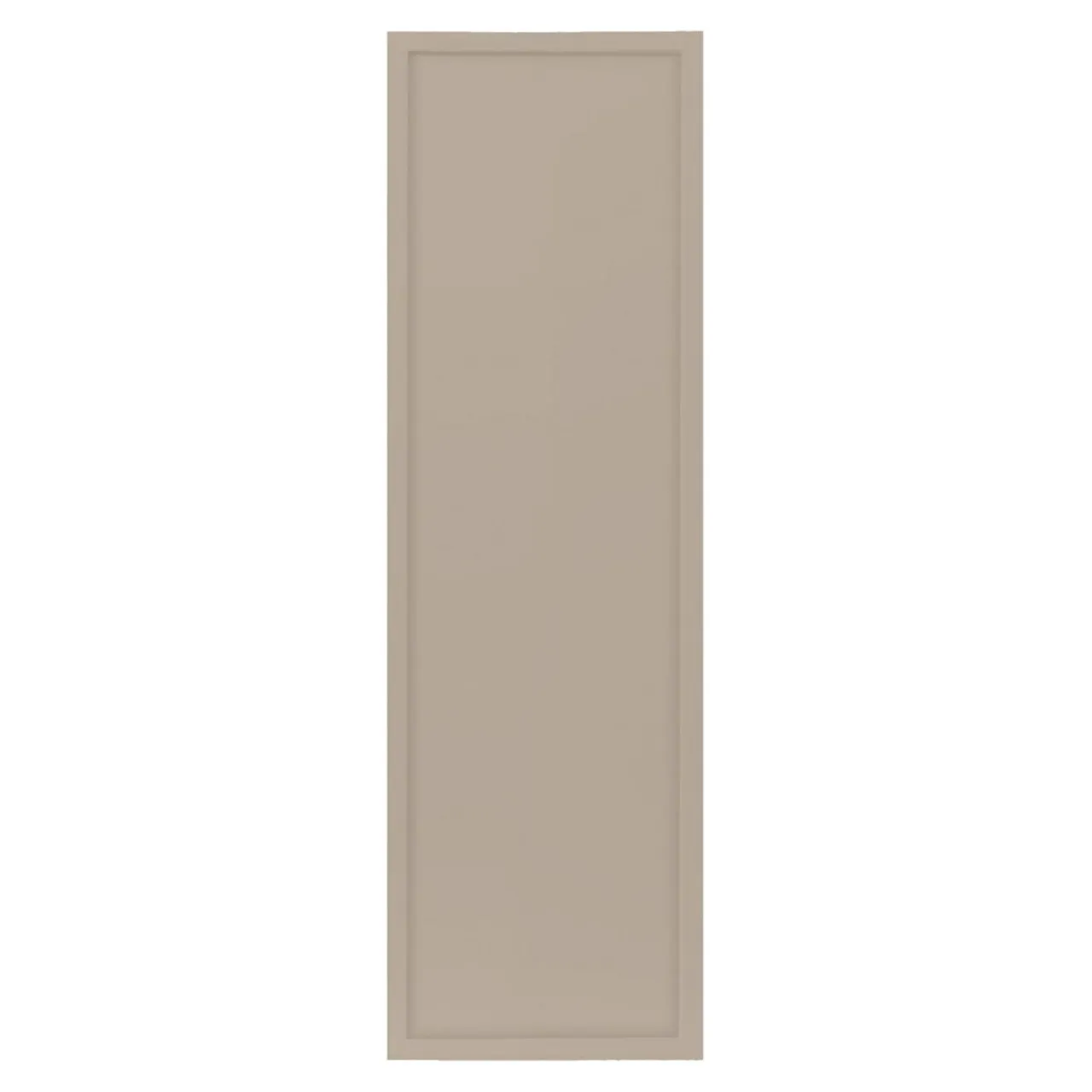 Front drzwi został wykończony folią PVC w szarym kolorze. Jego kolorystyka rozjaśnia optycznie pomieszczenie i doskonale sprawdza się w połączeniu z wnętrzami utrzymanymi w ciepłych barwach z drewnianymi meblami w naturalnych kolorach.