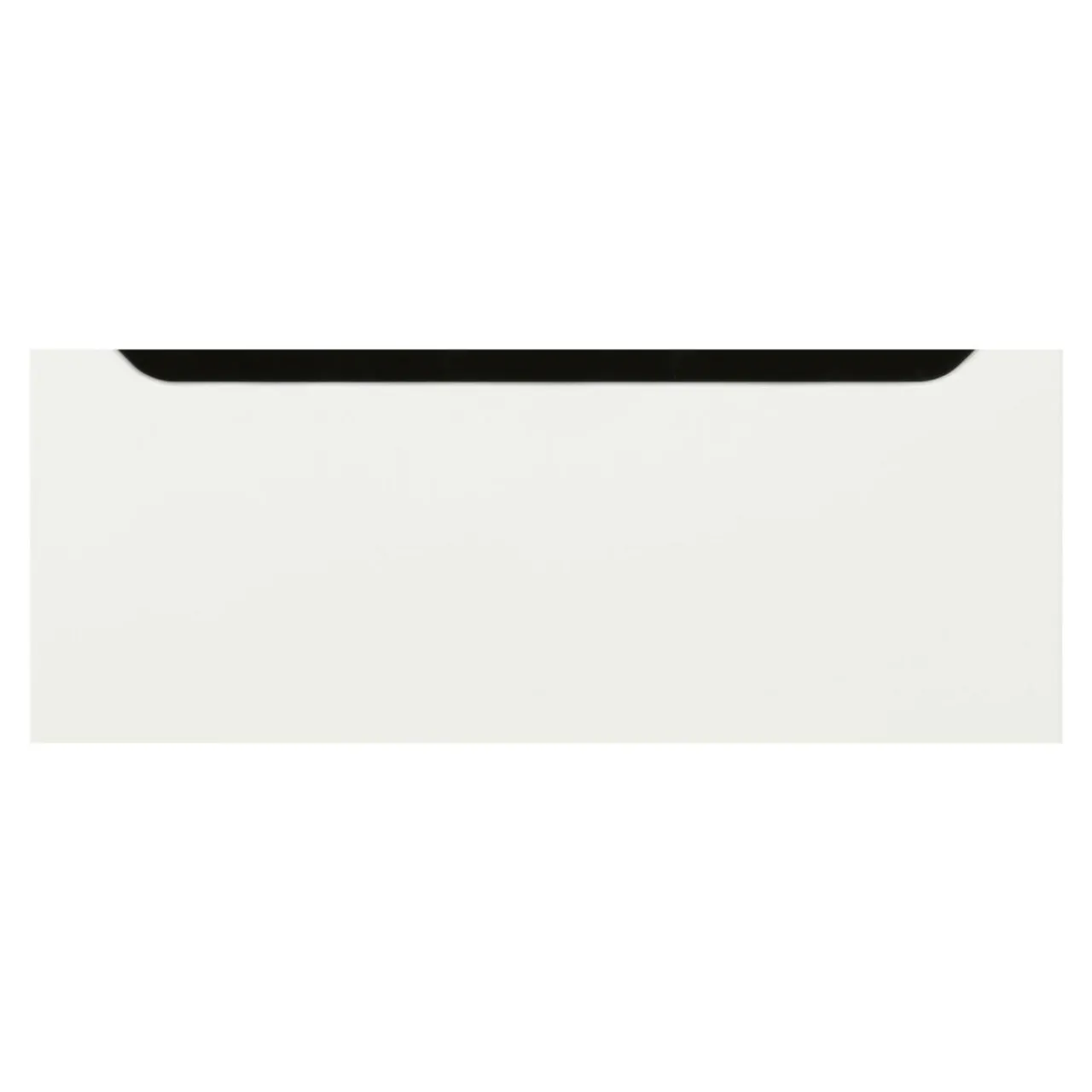 Dekor w białym kolorze z połyskiem sprawia, że front świetnie wygląda w połączeniu zarówno z jasnymi, jak i ciemnymi aranżacjami. Dodatkową zaletą jest uchwyt w formie frezu ze wstawką z czarnego lacobelu.