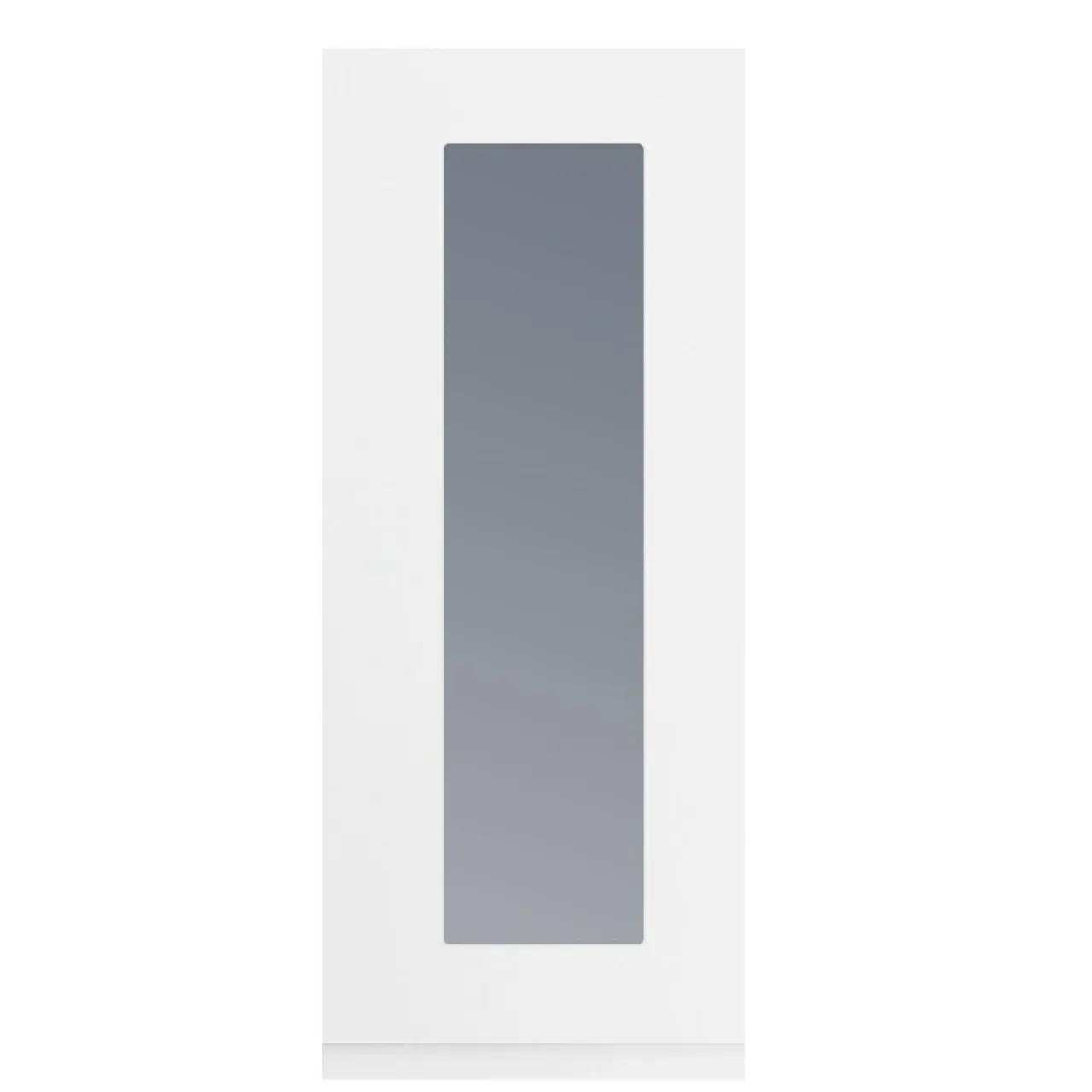 Przeszklony front drzwi PIANO w białym, matowym kolorze z przyciemnioną szybą to wybór idealny.