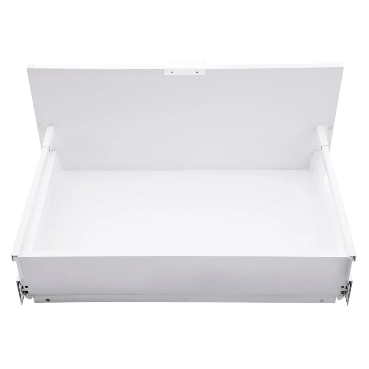 Niniejszy model szuflady INSIDE SYSTEM BOX został przeznaczony do montażu z wysokim frontem o szerokości 80 cm. Jej uniwersalny, biały kolor podkreśla nowoczesny design i sprawia, że pasuje praktycznie do każdego wykończenia.