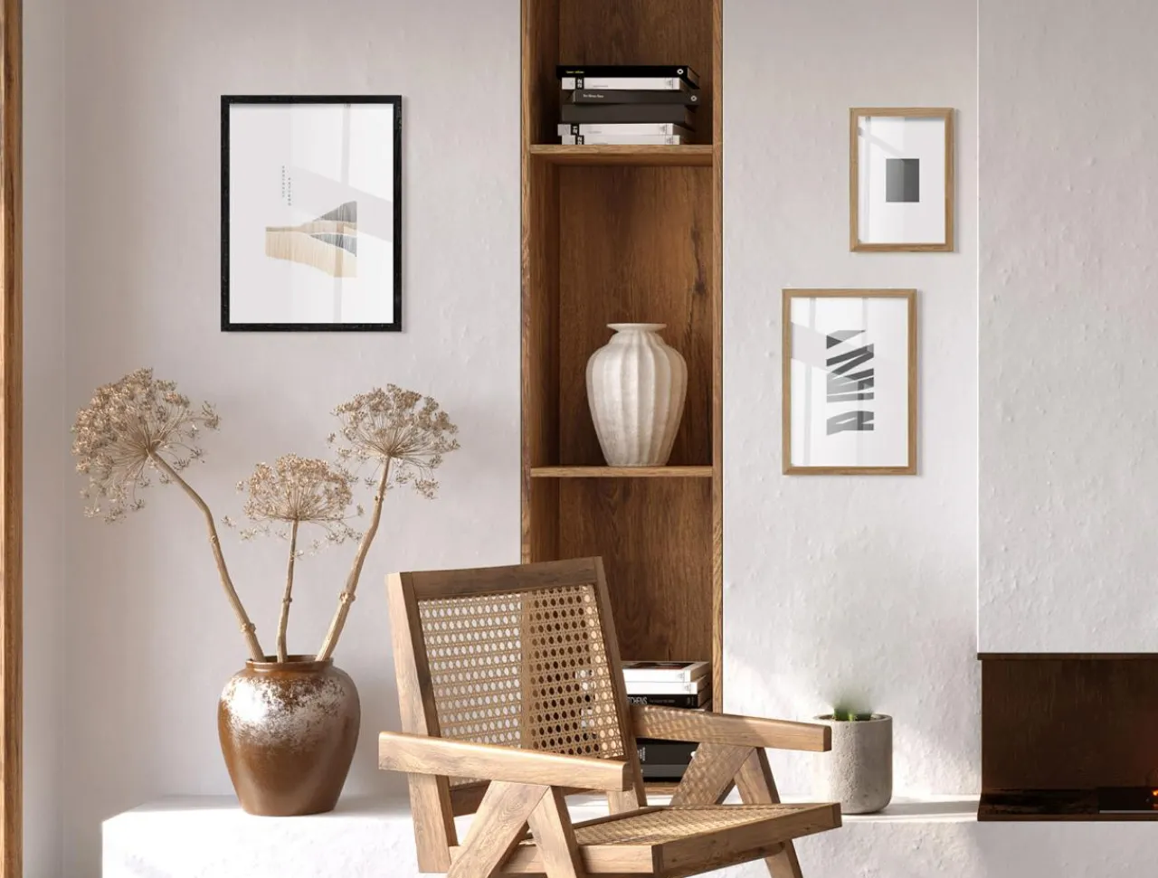 Ramki w kolorze naturalnego drewna są jego idealnym uzupełnieniem.