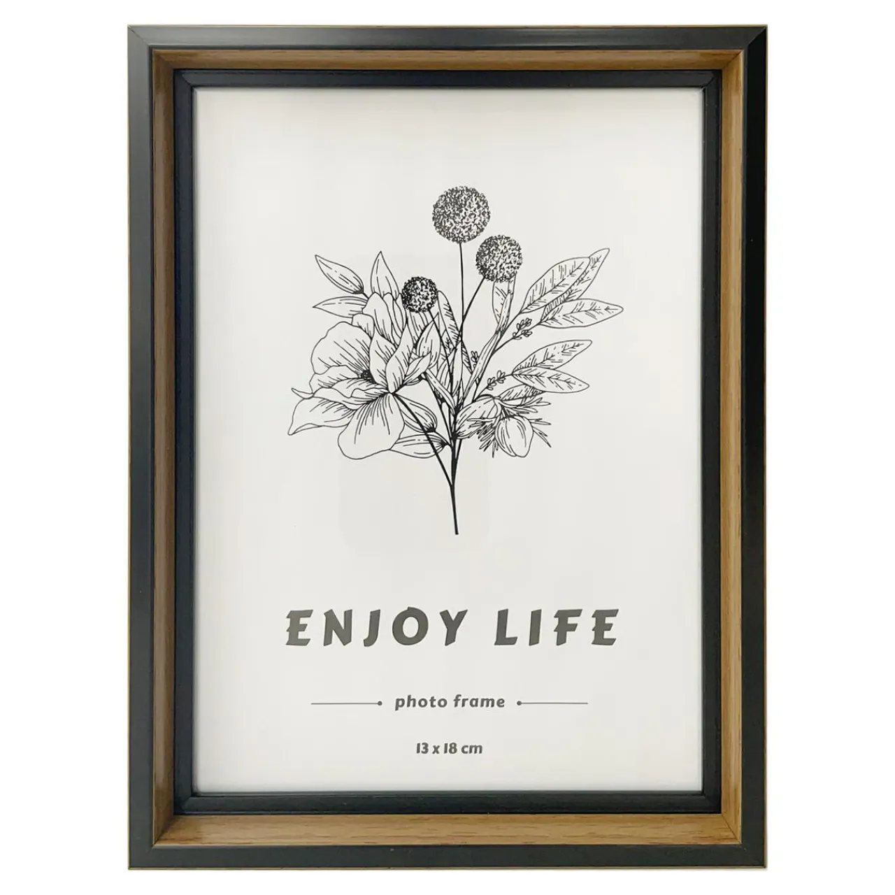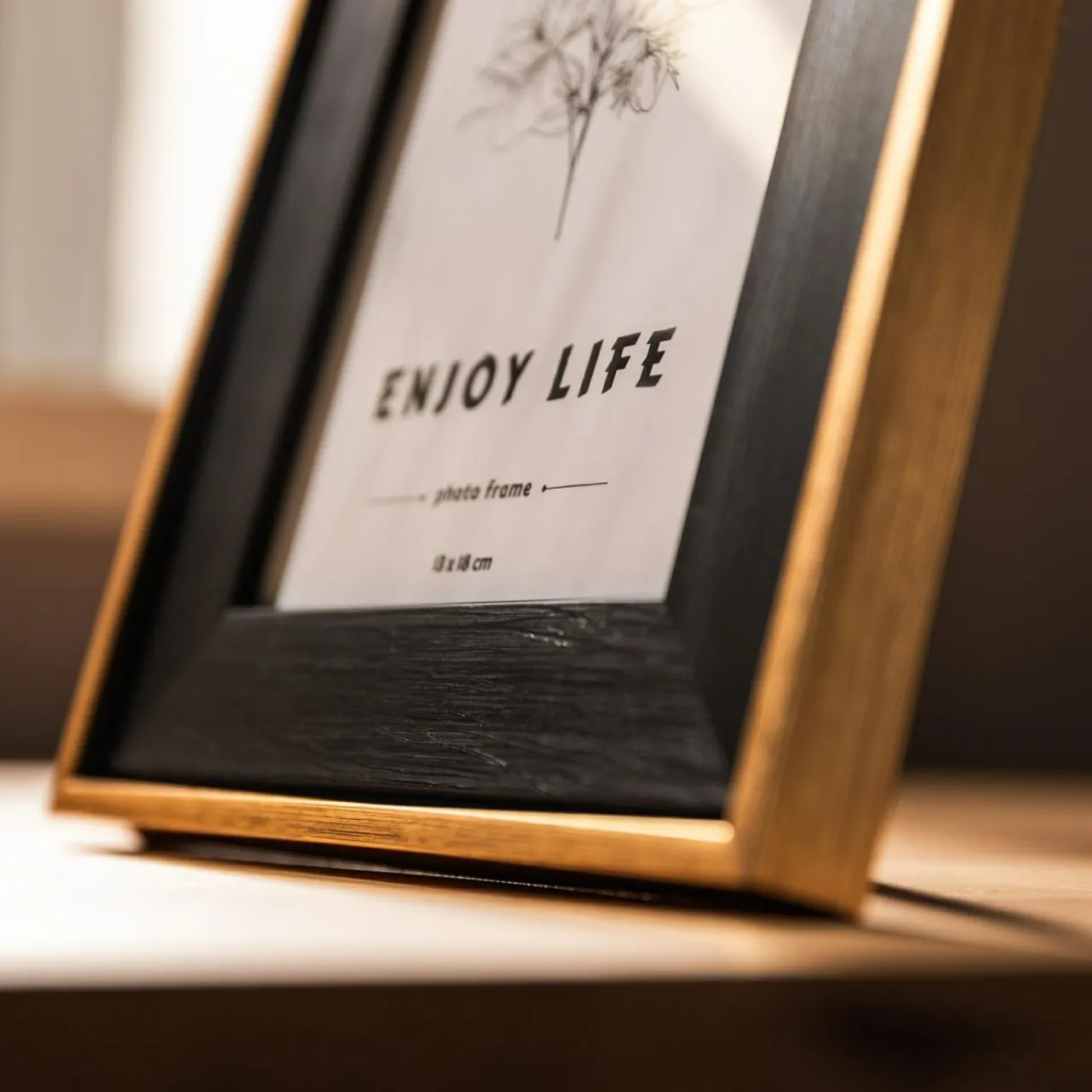 - Ramka na zdjęcia w naturalnym odcieniu drewna i czerni pasuje do salonu w stylu nowoczesnym. Podkreśli ciepło i naturalność.