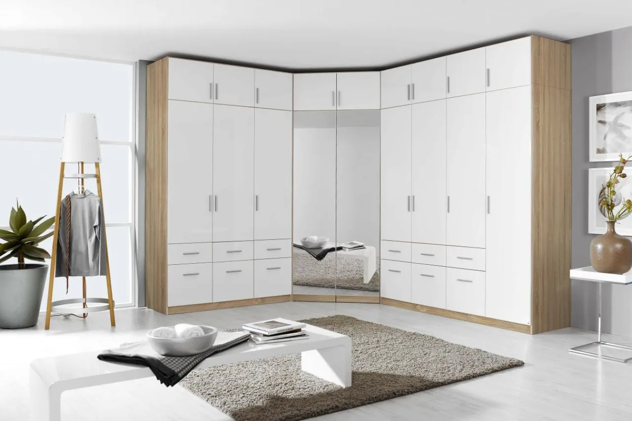 Dwudrzwiowa nadstawka narożna z wnękami w środku.