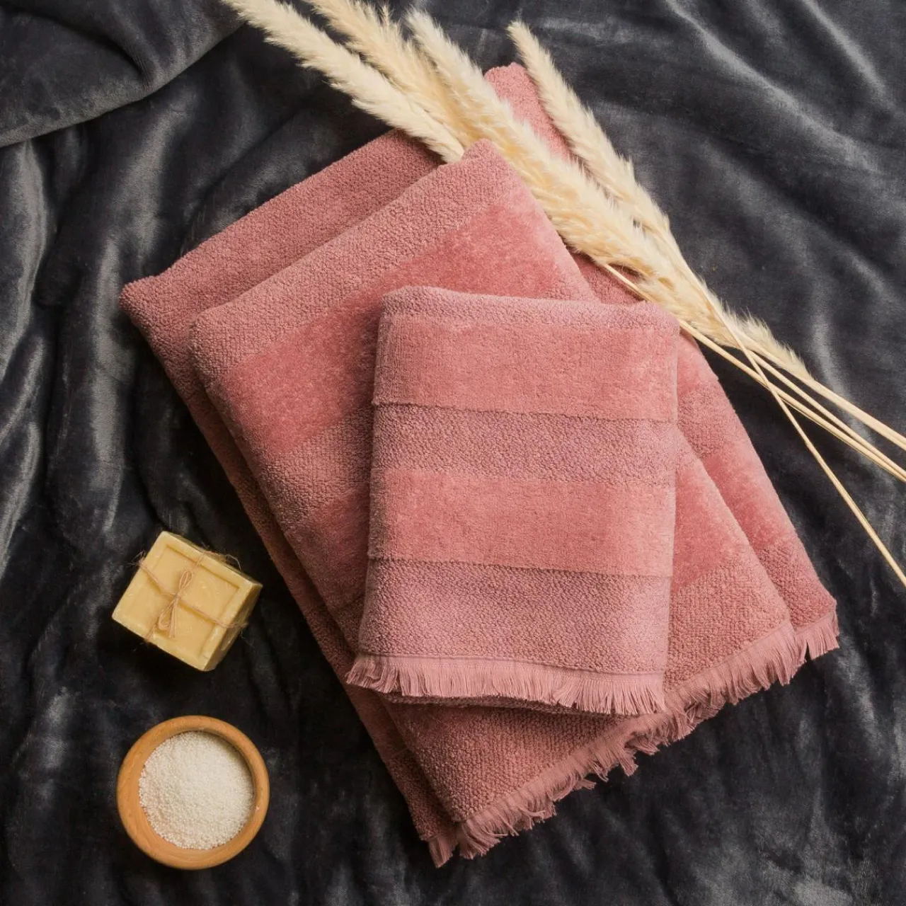 - Różowy ręcznik ożywi przestrzeń.