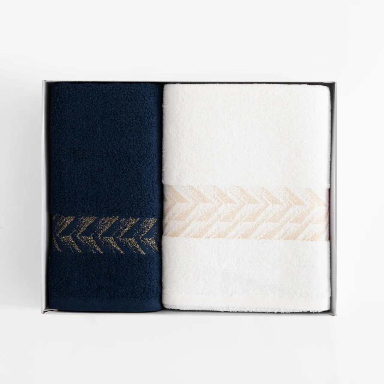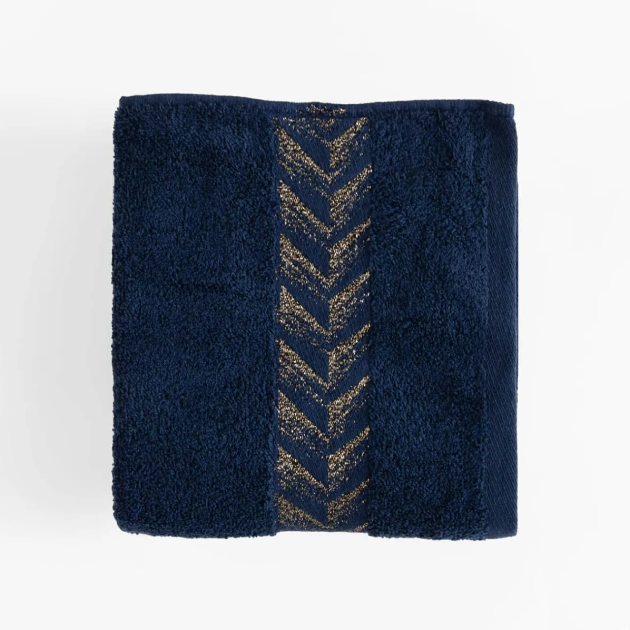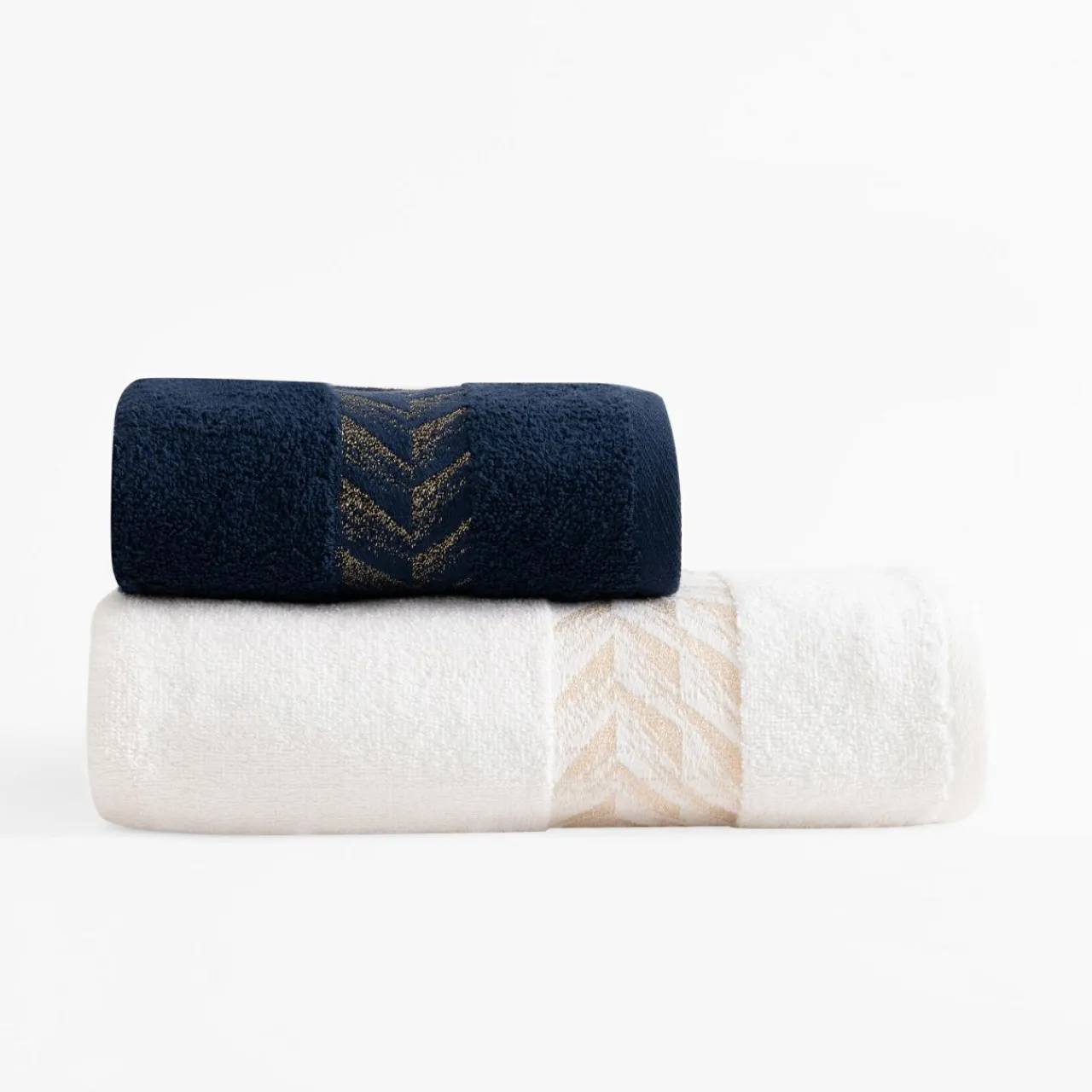 Bawełniane ręczniki GLOW przyciągną uwagę złotą bordiurą.