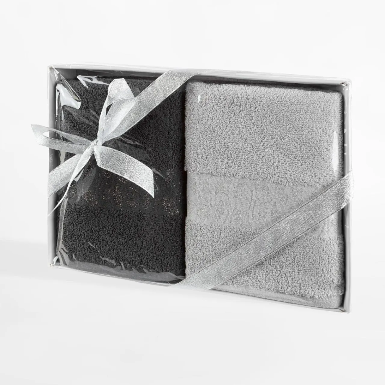 - ręcznik o wymiarach: 50×90 cm, w stalowym kolorze.
