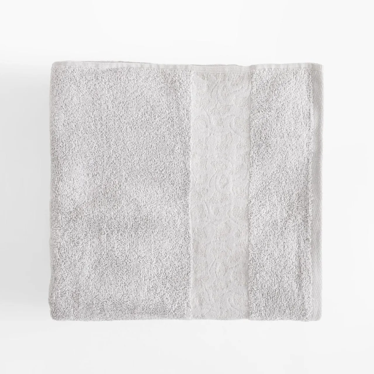 - ręcznik o wymiarach: 50×90 cm, o stalowym kolorze.