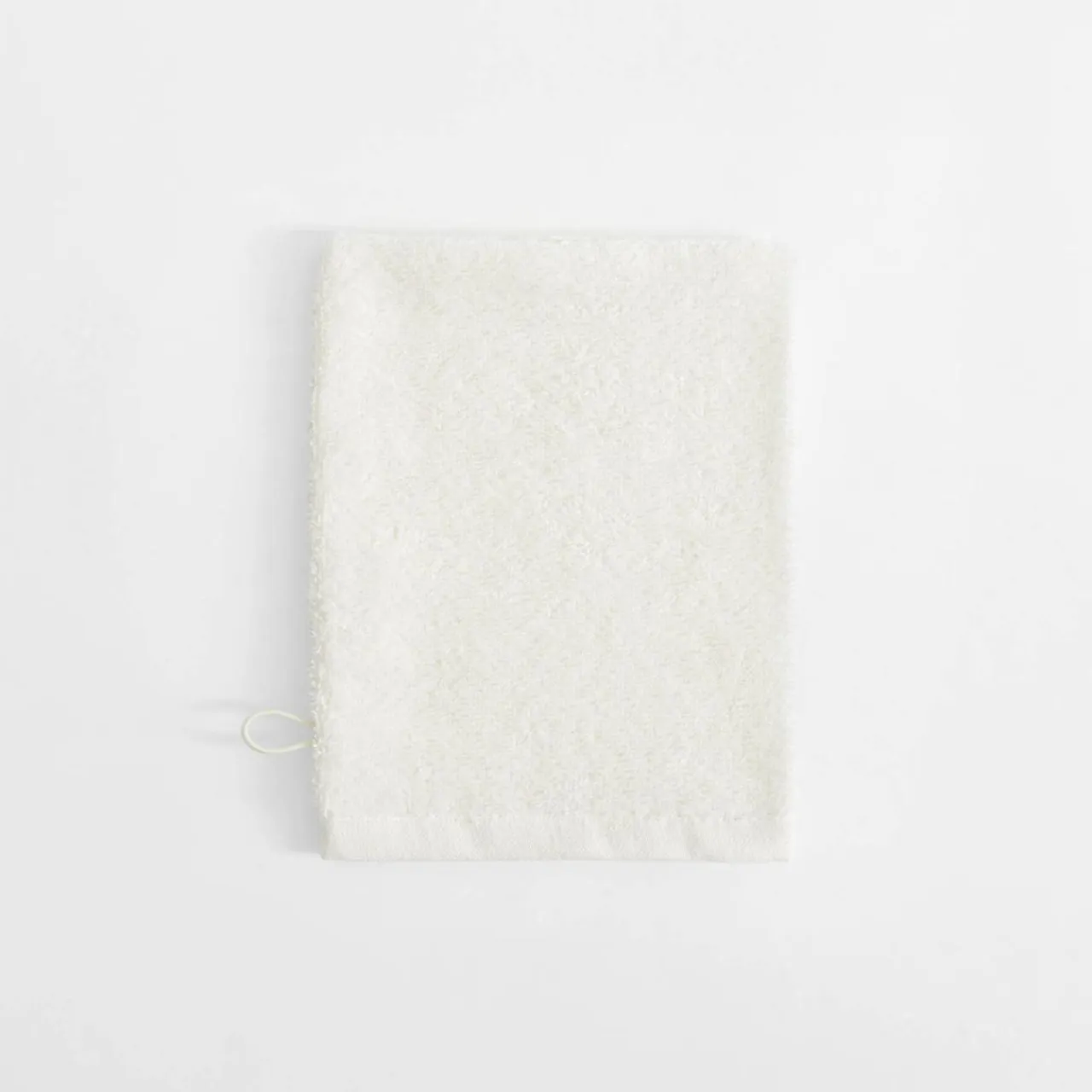 Kremowa myjka o wymiarach 16×21 cm przyda się do delikatnej codziennej pielęgnacji.