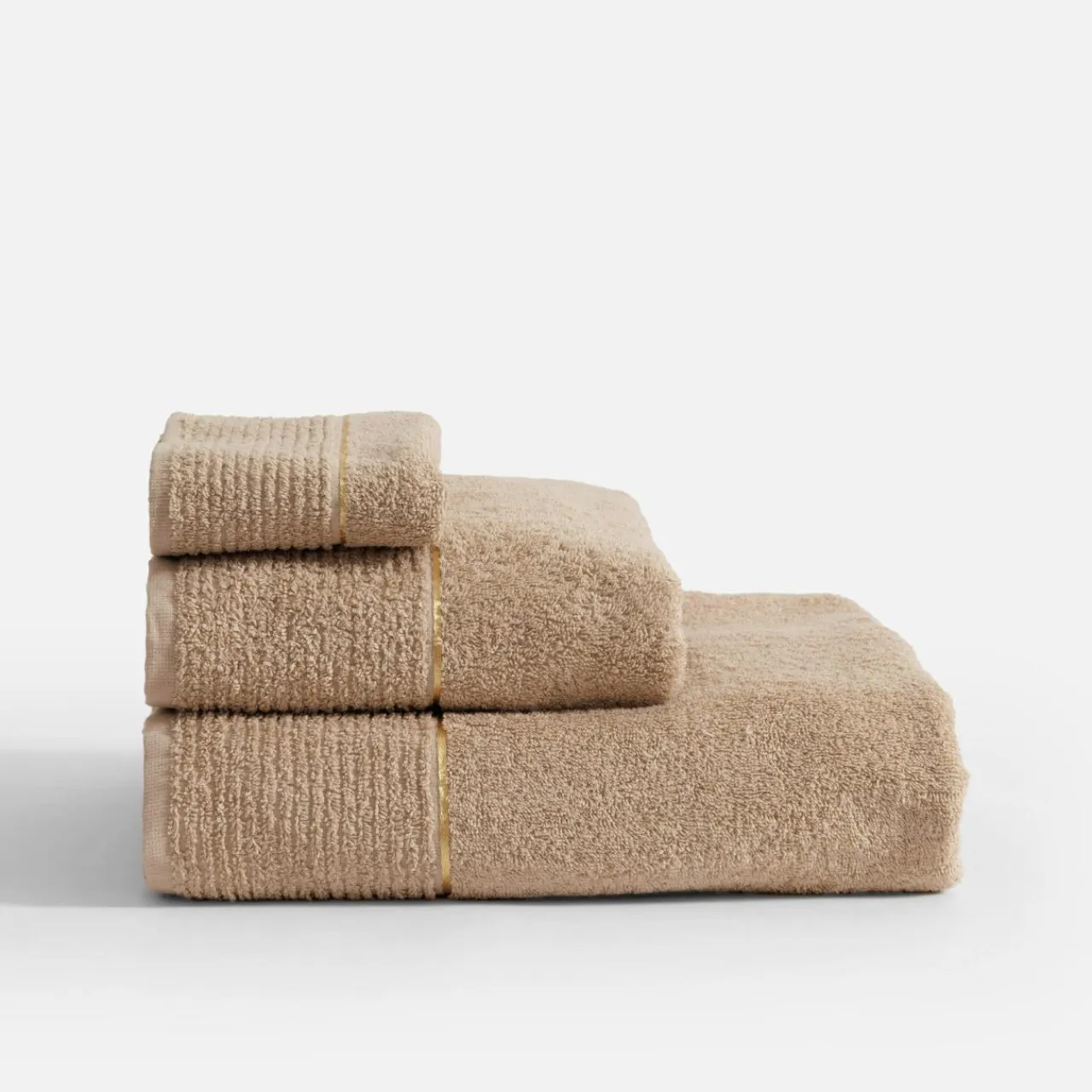 - Złota lamówka ręcznika sprawia, że złożony na półce stanowi prawdziwą ozdobę łazienki.