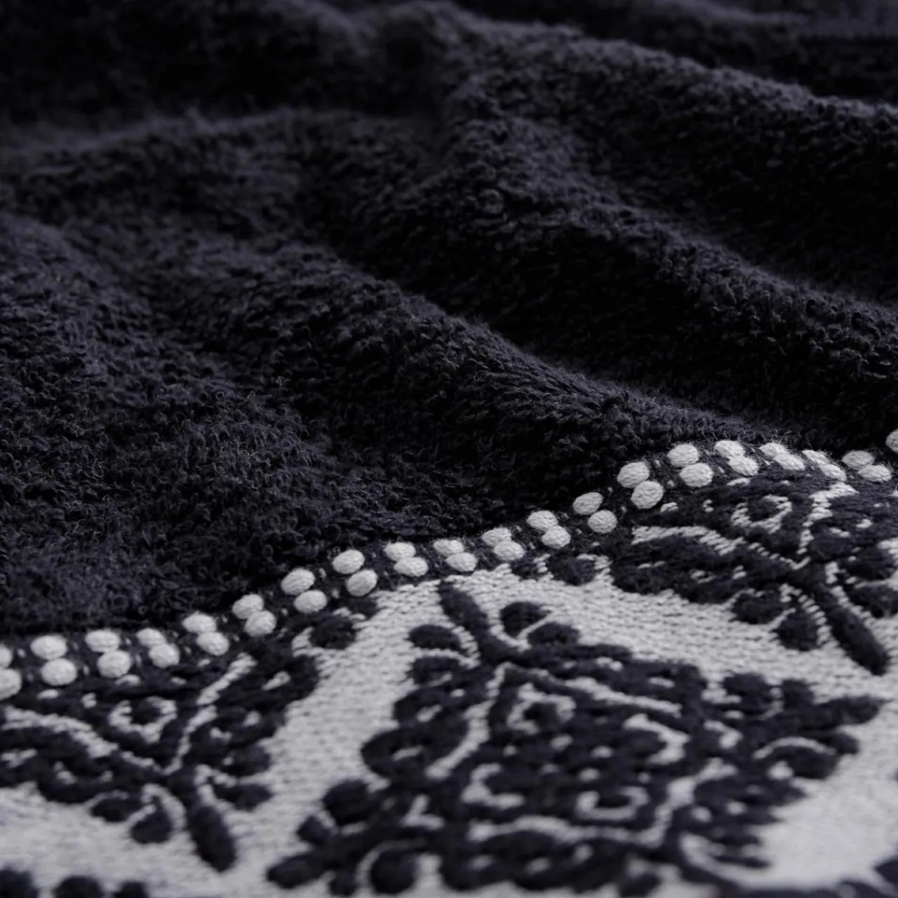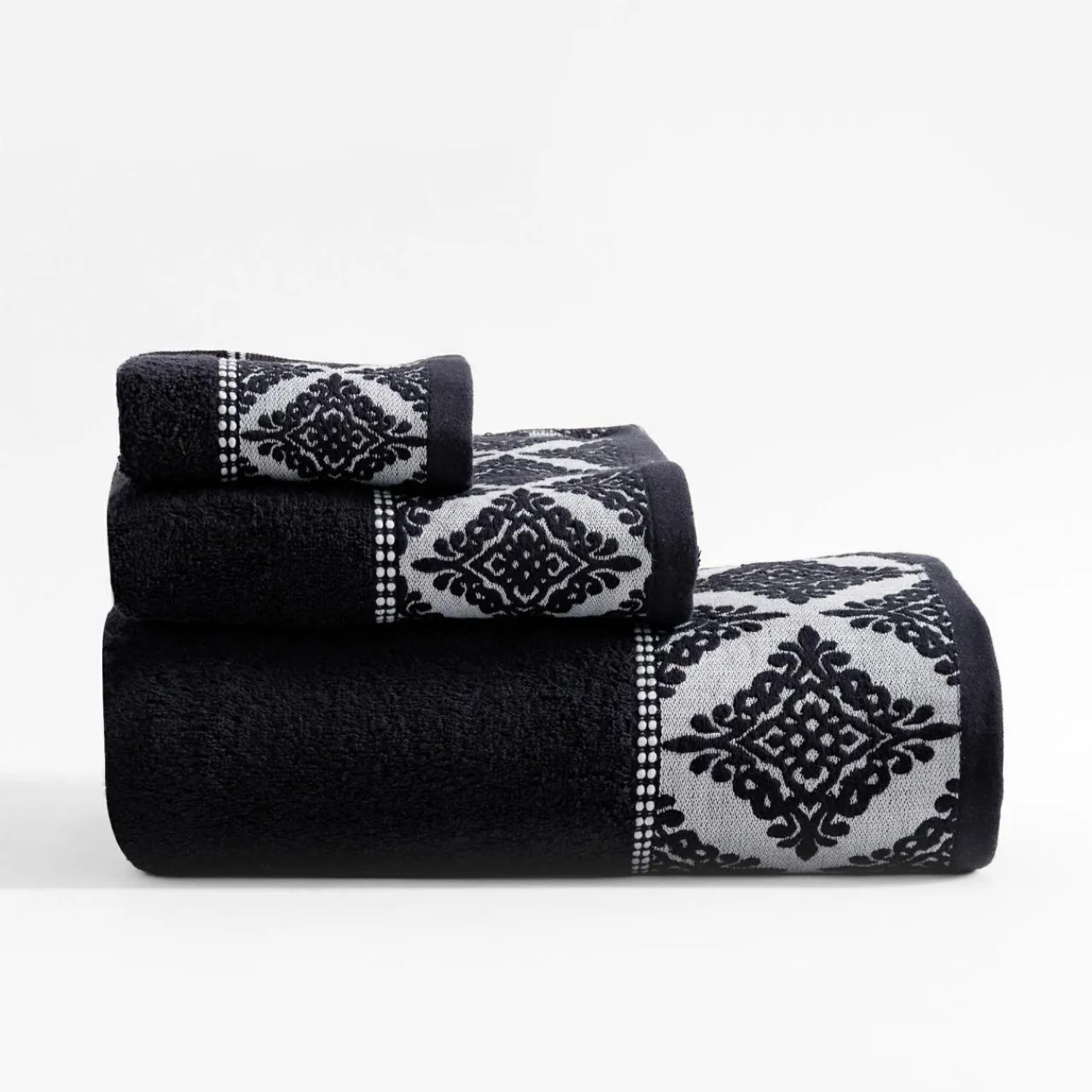 - Kolory czerni i bieli sprawią, że ręcznik będzie pięknie prezentował się złożony na półce.