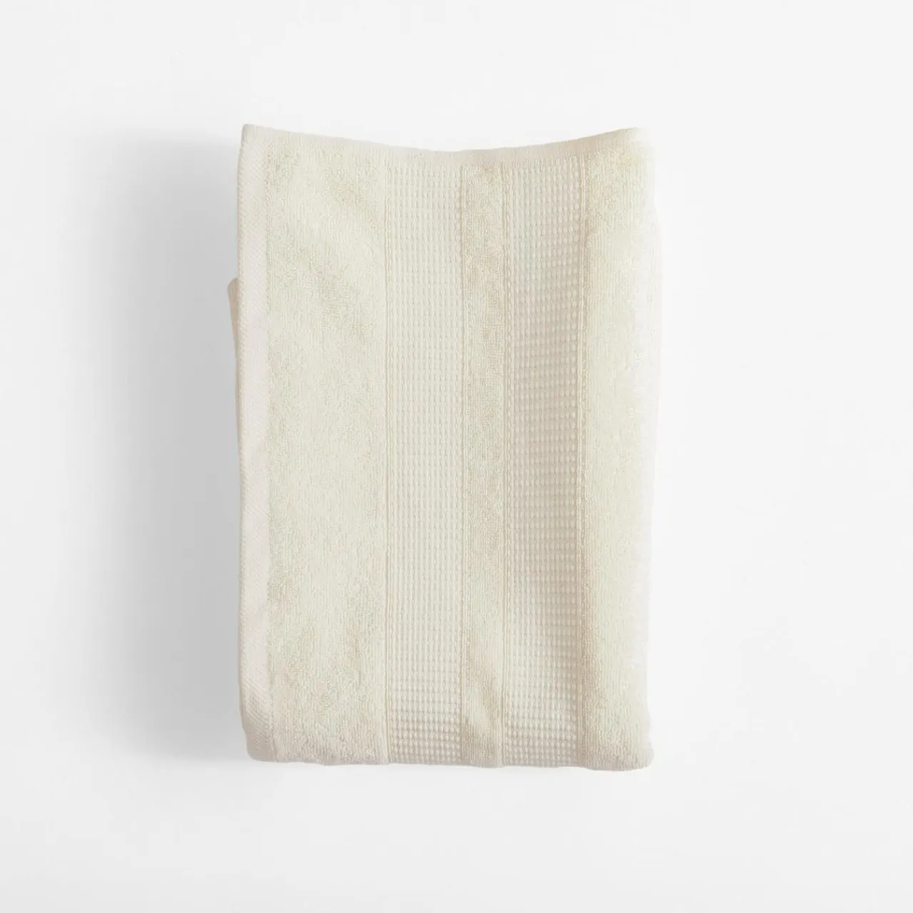 Ręcznik TULSA w kolorze kremowym zapewni komfort i ciepło po skończonej kąpieli.