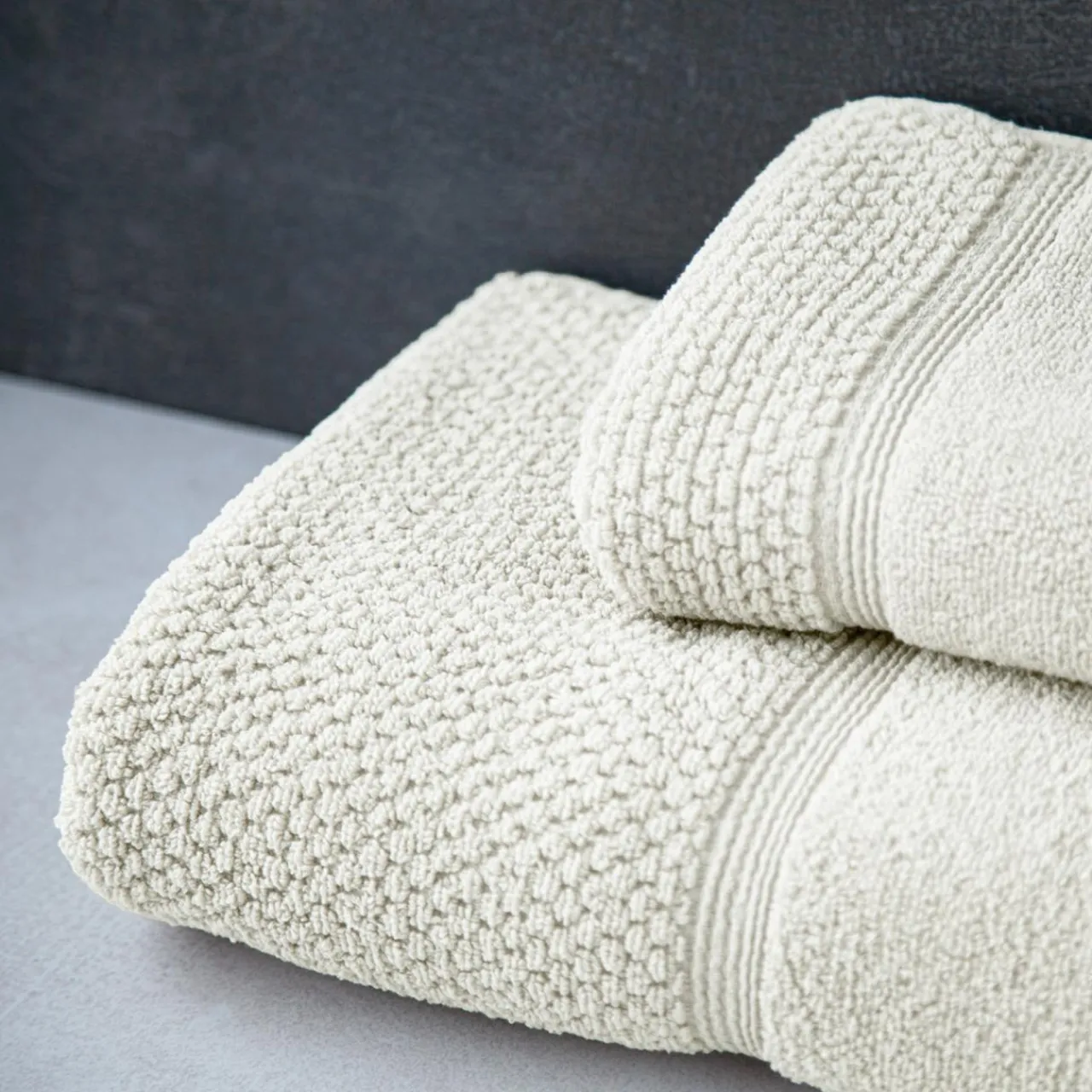 Ręczniki z kolekcji SANTORINI wyróżniają się dekoracyjną, miłą w dotyku fakturą. Chłonny ręcznik wykorzystasz po kąpieli, nad morzem lub na basenie.