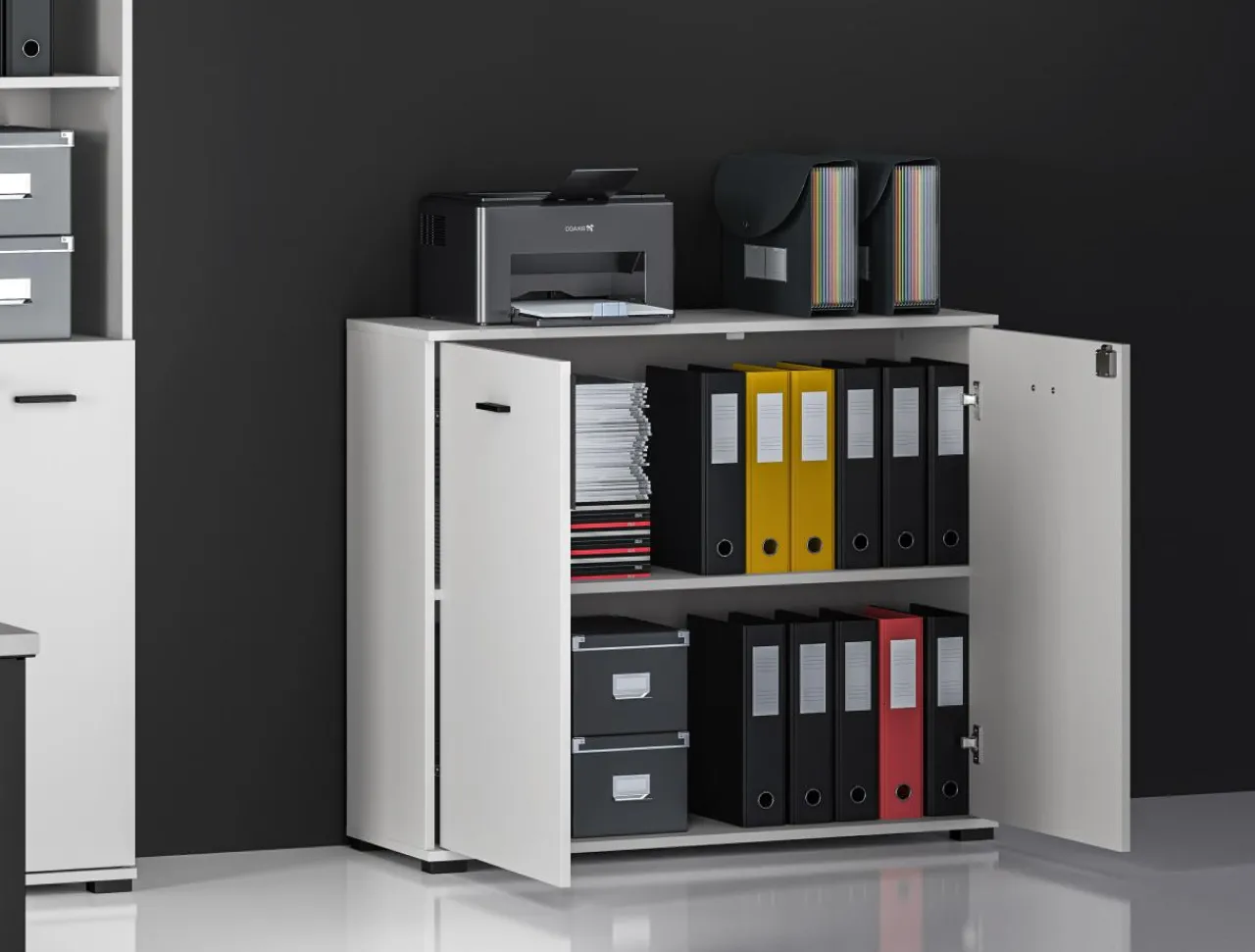 - Szafki zamykane na klucz zwiększą bezpieczeństwo dokumentów oraz pozostałych przedmiotów schowanych do środka.
