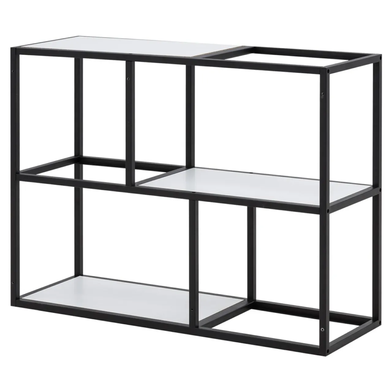 Mocne, wykonane z metalu i wykończone eleganckim czarnym kolorem ramy regału doskonale podkreślają kolorystykę kuchennego wnętrza.