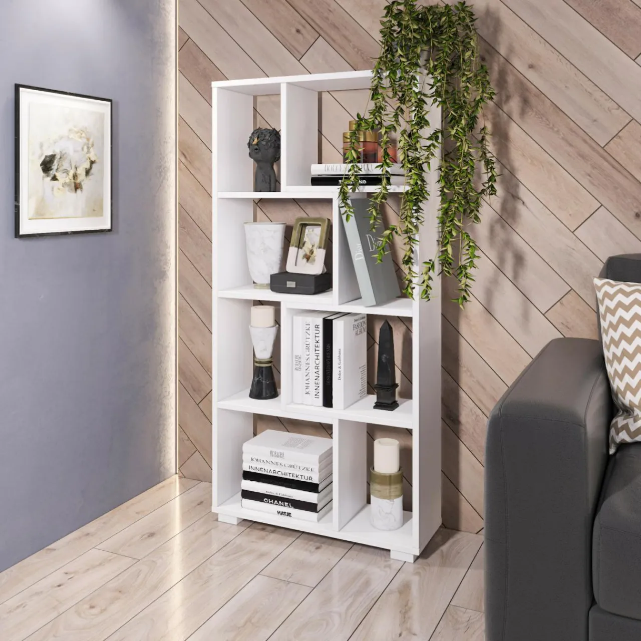 Szukasz nowoczesnego regału? Niesymetryczne rozmieszczenie półek w regale UNIWERSUM BIAŁYM przyciąga wzrok i pozwala stworzyć modną aranżację wnętrza.