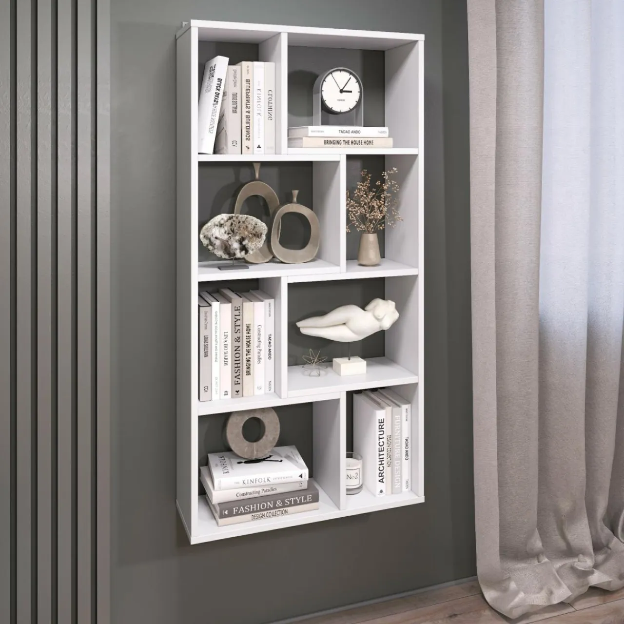 - Regał możesz ustawić pionowo, poziomo lub powiesić na ścianie.