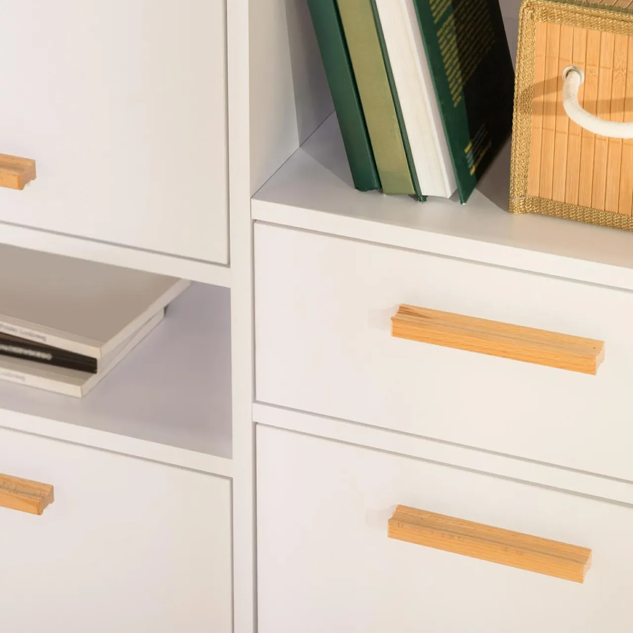 Kolekcja posiada solidne wykończenie w postaci elementów z drewna bukowego. Naturalne detale sprawiają, że każdy mebel będzie posiadał niepowtarzalny rysunek słojów.