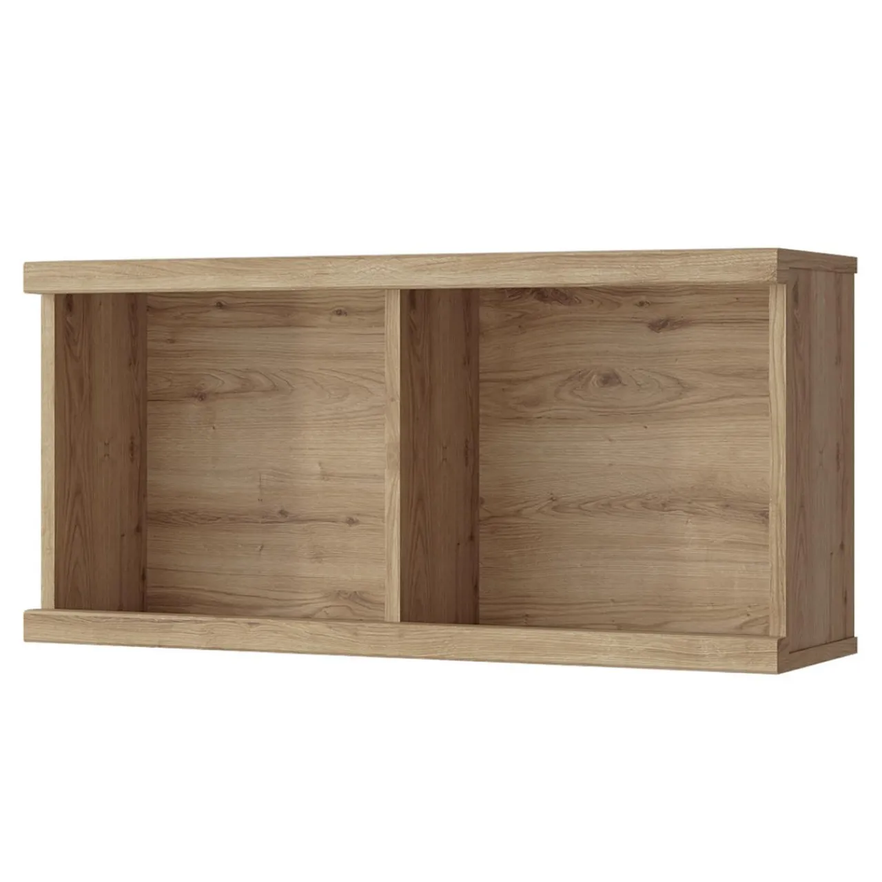 Wiszący regał ma prawie 40 cm wysokości i 80 cm długości. Został podzielony na 2 wnęki, które możesz zagospodarować na zdjęcia, kilka książek, ozdoby lub kwiaty.