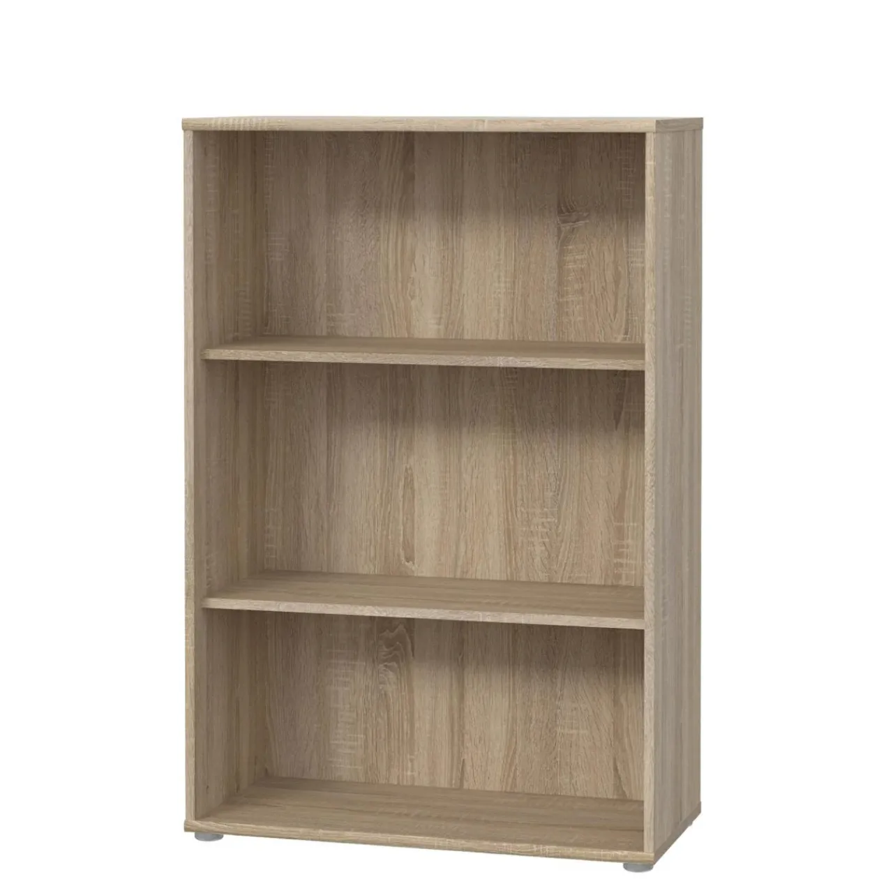 Regał TEMPRA 2 został wykonany z płyty meblowej, pokrytej folią. Całość jest utrzymana w jasnej tonacji kolorystycznej dąb sonoma.