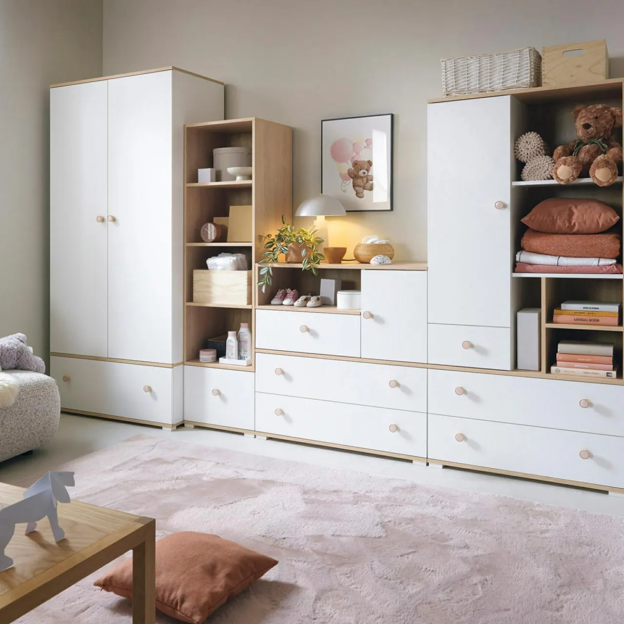 Regał ZOYA na początku sprawdzi się do przechowywania najpotrzebniejszych rzeczy przy łóżeczku. Potem zamieni się w miejsce na ulubionych bohaterów z bajek.