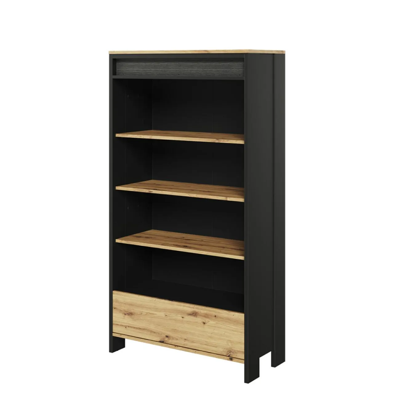 - Regał posiada 4 otwarte wnęki i szufladę, która pomieści niewielkie akcesoria.