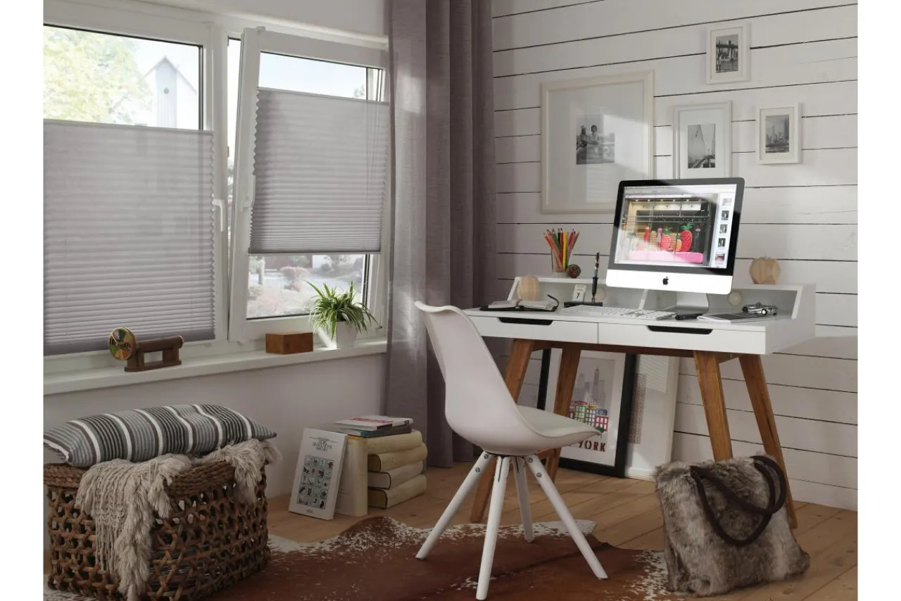 Uniwersalny szary odcień ułatwia dopasowanie rolety do wystroju wnętrza oraz koloru oprawy okiennej.