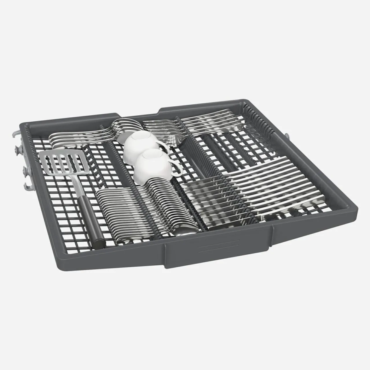 - Płynny wysuw na rolkach dolnego kosza z blokadą RackStopper.