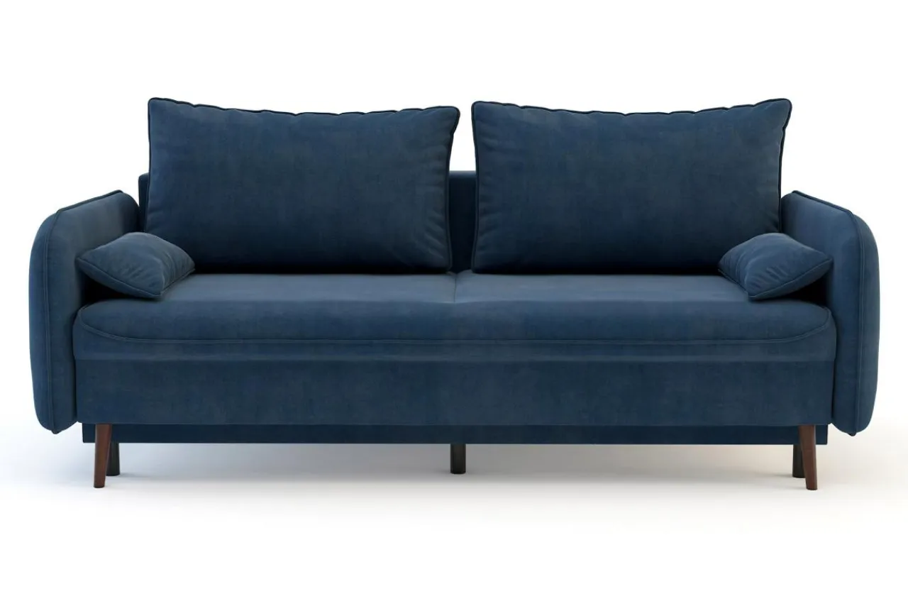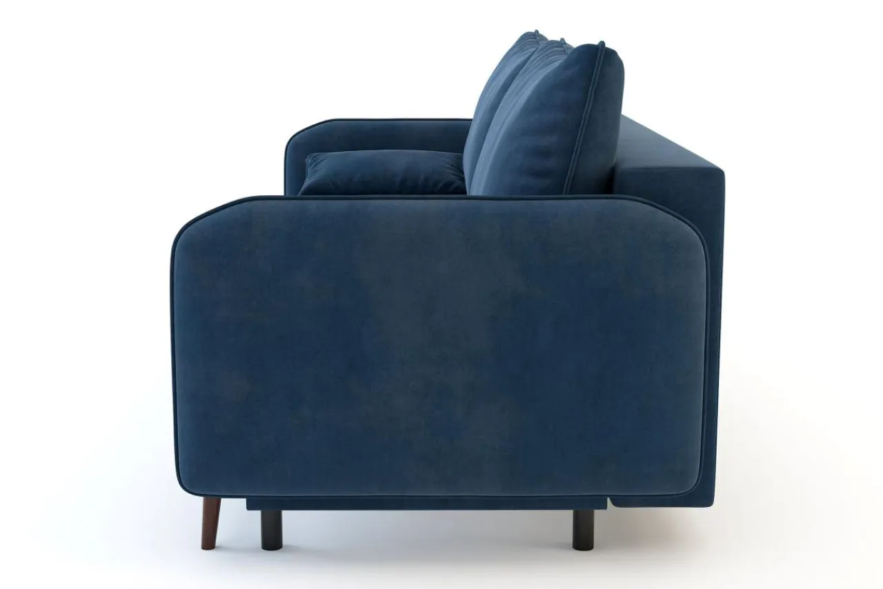 Sofa utrzymana jest w nowoczesnym stylu. Smukła linia w połączeniu z miękką, welurową tkaniną sprawiają, że możesz wkomponować ją w różne aranżacje wnętrz.