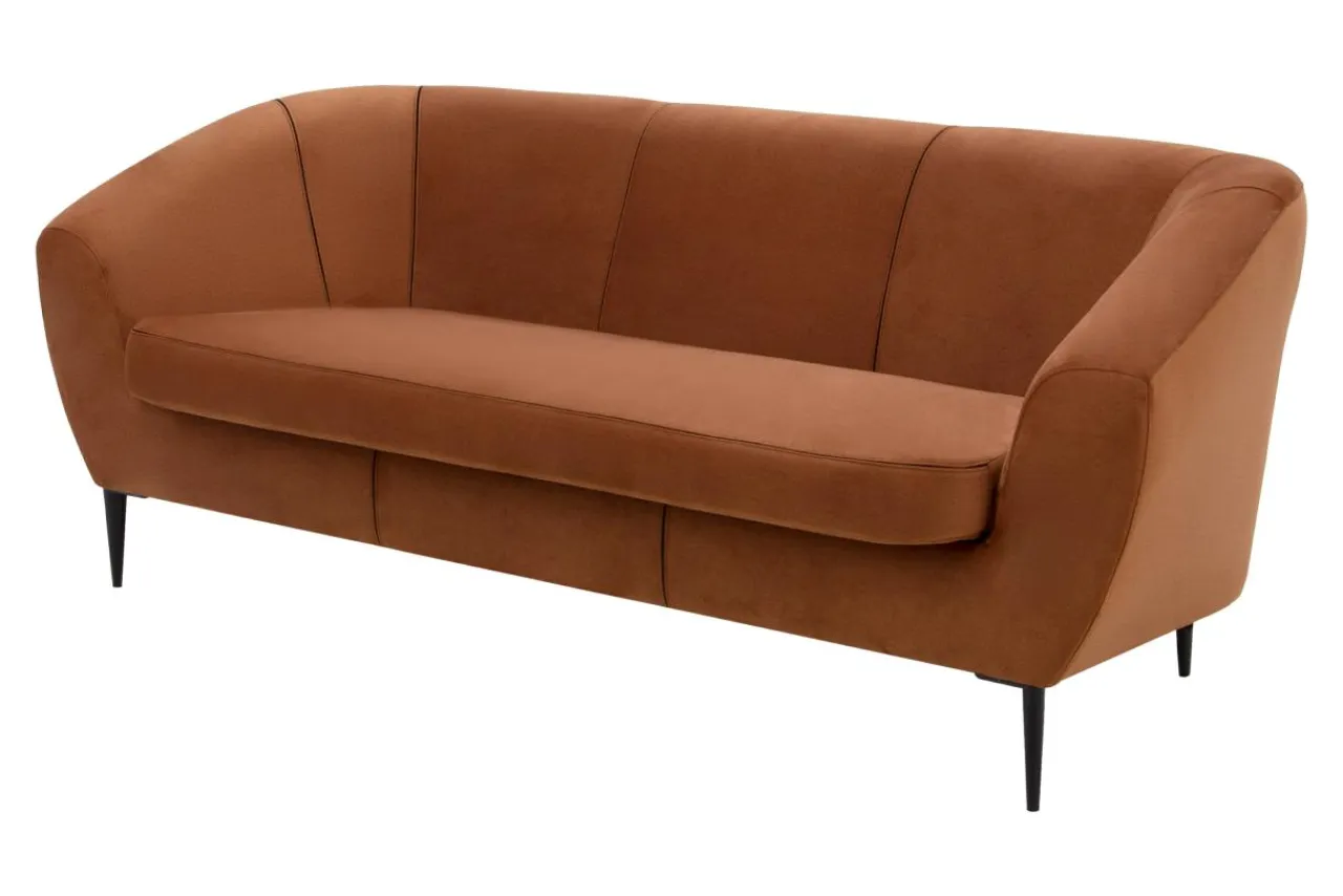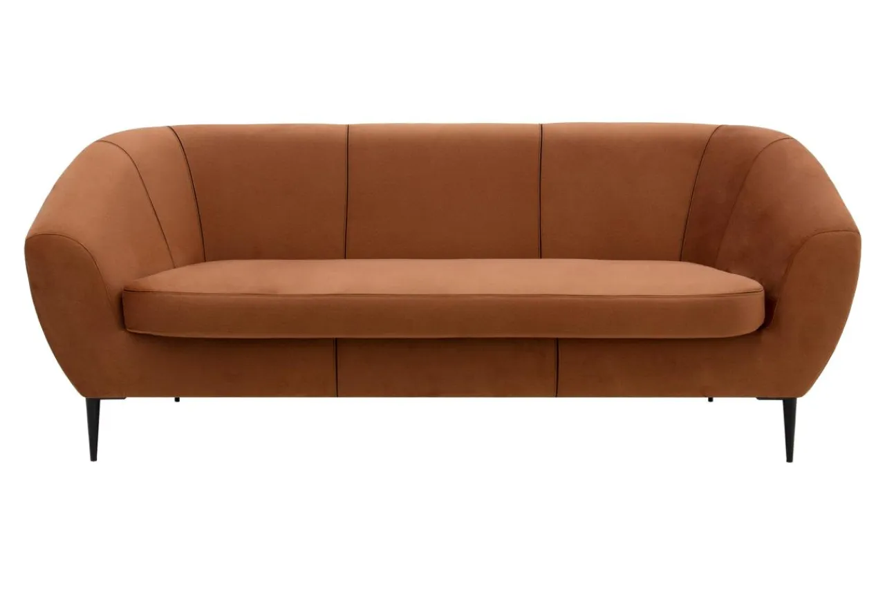 Sofa z modnymi obłościami zgrabnie wkomponuje się w nowoczesne wnętrze, a wysokie nóżki ułatwią odkurzanie.