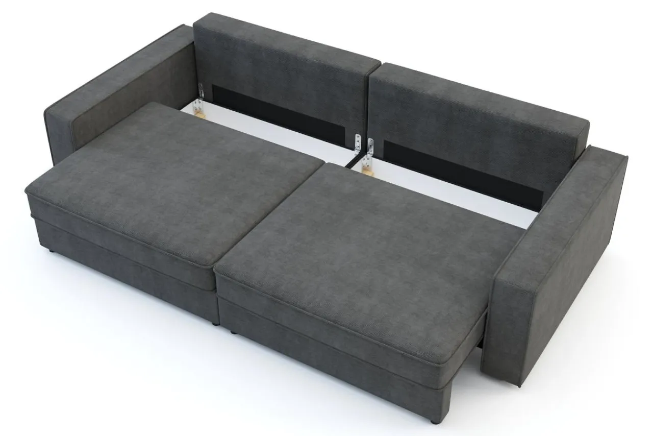 - Zarówno w siedzisku, jak i oparciu znajdują się sprężyny kieszeniowe, dzięki czemu po rozłożeniu cała powierzchnia spania będzie komfortowa.