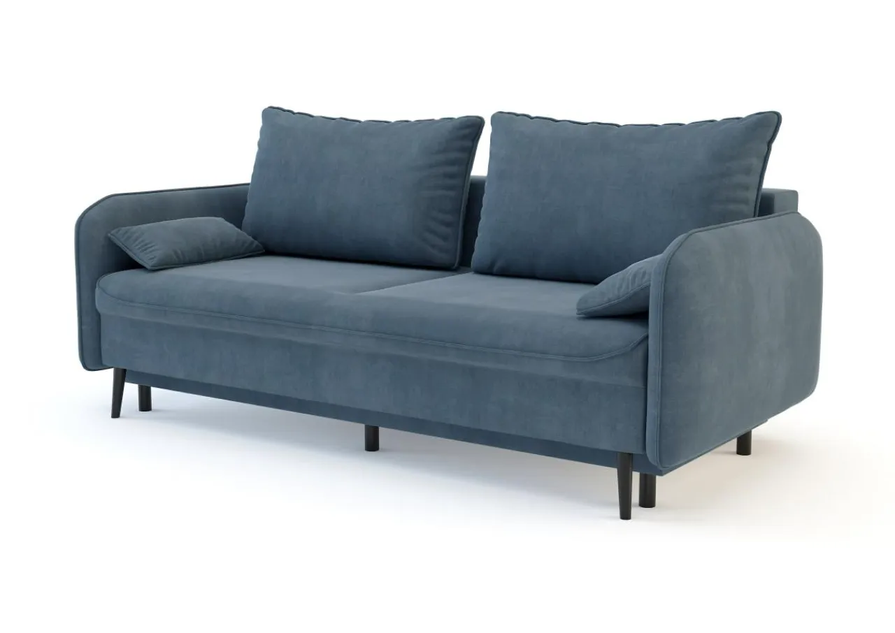 Sofa utrzymana jest w nowoczesnym stylu. Smukła linia w połączeniu z miękką, welurową tkaniną sprawiają, że możesz wkomponować ją w różne aranżacje wnętrz.