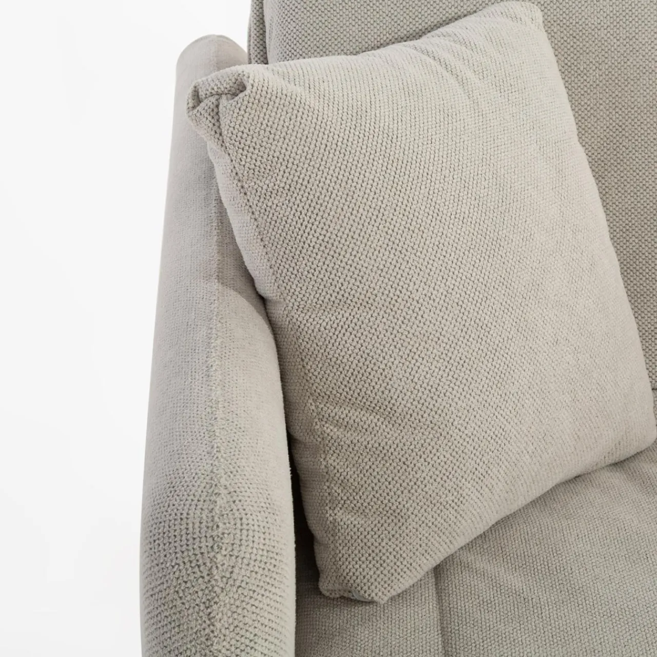 - Tkanina CURIO ma gruby splot, który łączy jasne i ciemnoszare włókna, dając efekt trójwymiarowości.