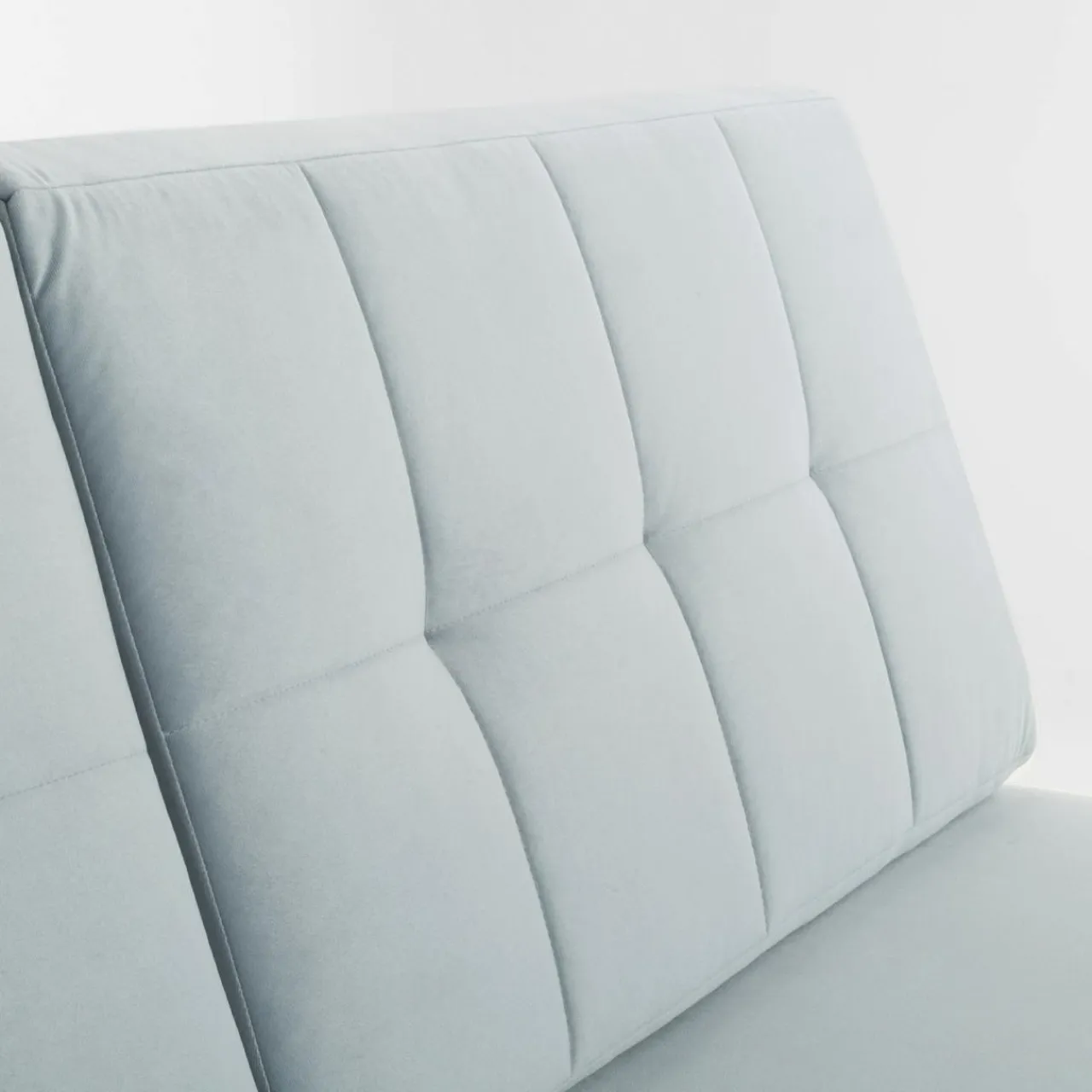 - Stylowe przeszycia i błękitny welur będą pasować do wystroju salonu w stylu skandynawskim.