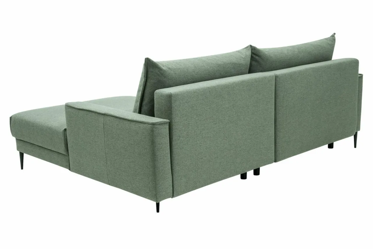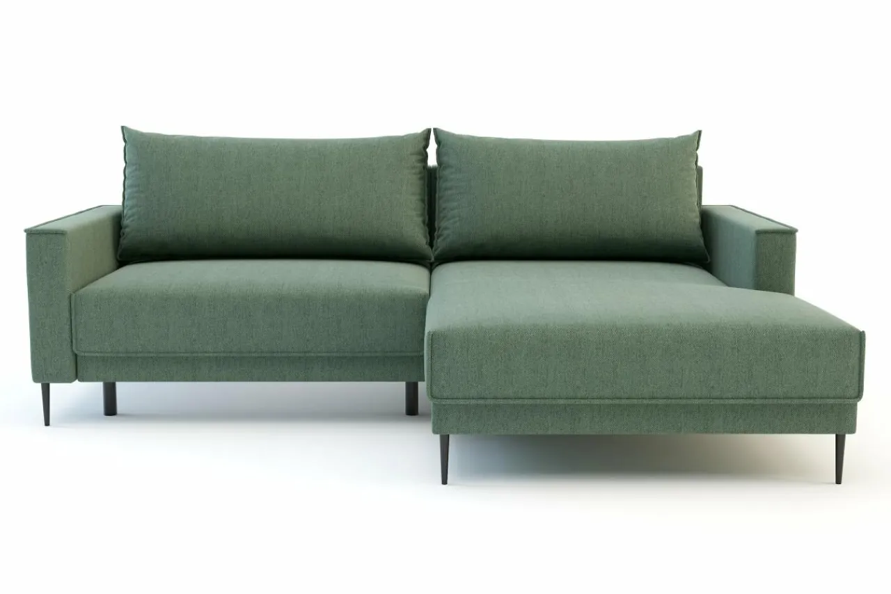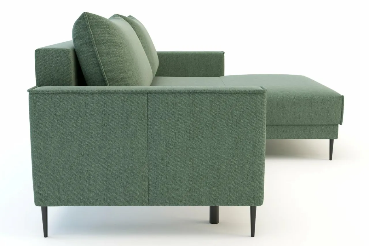 Narożnik osadzony jest na wysokich nóżkach, co nadaje mu lekkości i ułatwia zachowanie czystości pod nim.