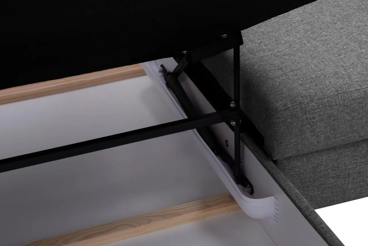 Stelaż pod siedziskiem wysuwamy i podnosimy za pomocą uchwytu. Mebel nie wymaga odsuwania od ściany. Idealny do okazjonalnego spania.