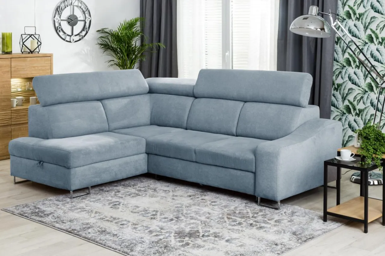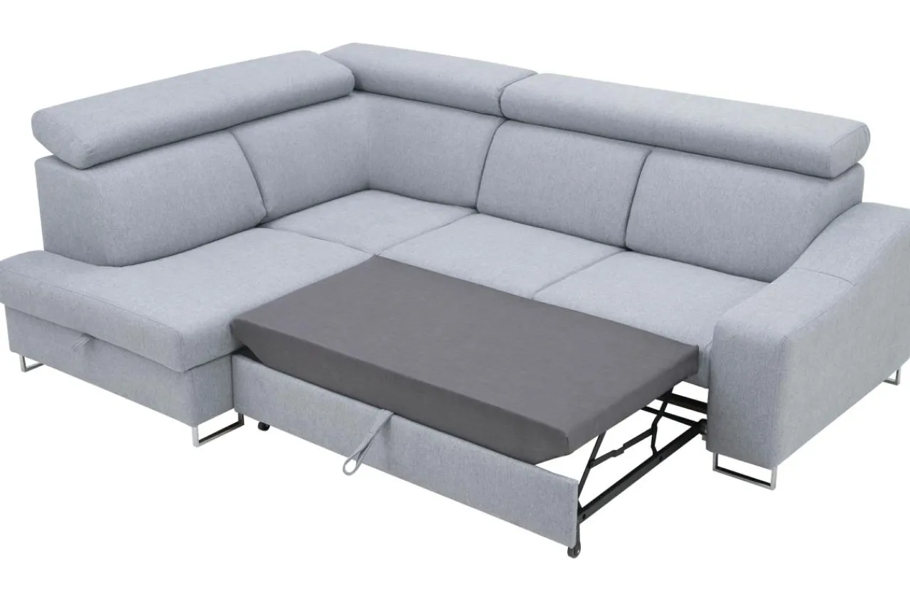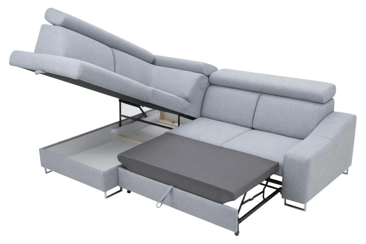 BRICO posiada możliwość rozłożenia oraz pojemnik na pościel. Jego regulowane zagłówki pozwalają na przyjęcie wygodnej pozycji podczas wypoczynku, a pianka i wbudowane sprężyny faliste dbają o komfort siedzenia.