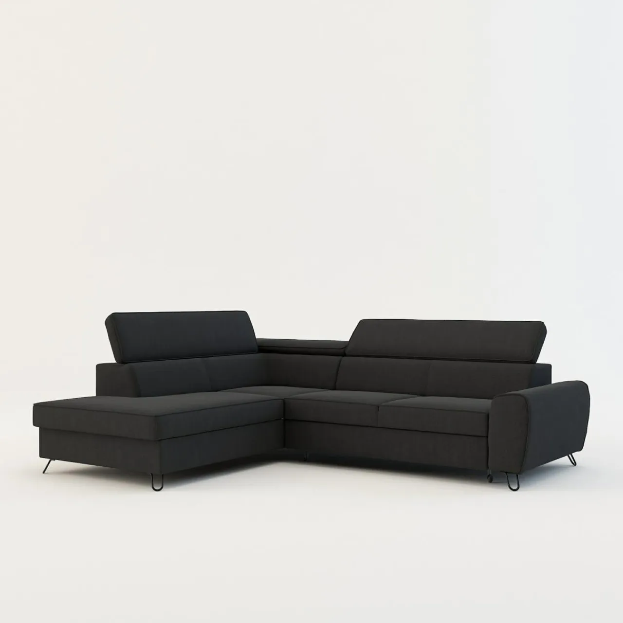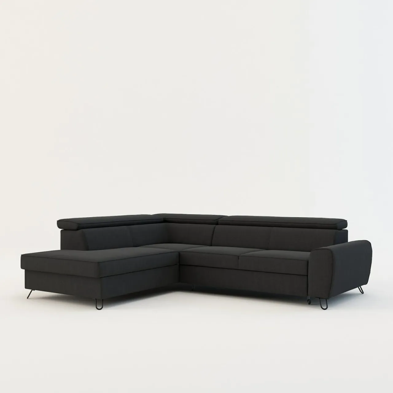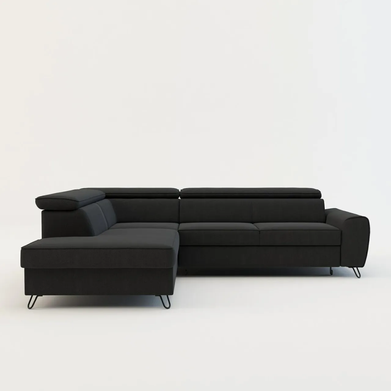 - Narożnik posiada 3 regulowane zagłówki na całej długości narożnika, dzięki czemu każdy z gości może usiąść równie komfortowo.